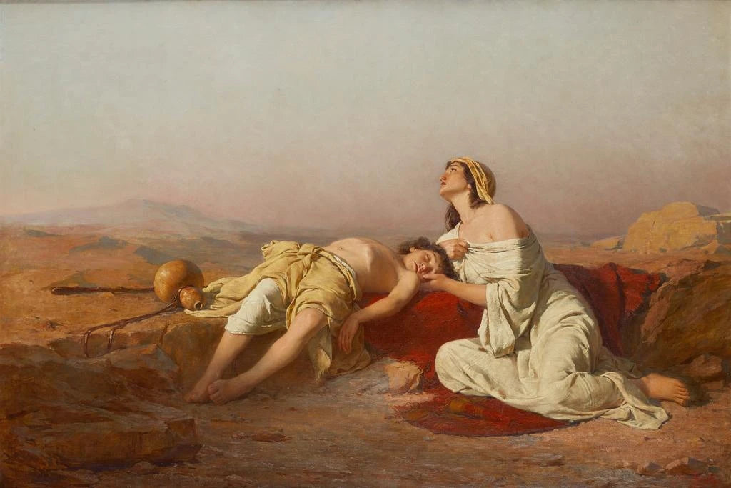 Agar en Ismaël in de woestijn: een schilderij doordrenkt met melancholie In "Agar en Ismaël in de woestijn" vangt Josef Straka een aangrijpende scène waarin het zonlicht zich mengt met de schaduwen van de woestijn. De warme tinten van oker en zand contrasteren met de donkerdere nuances van de personages, waardoor een sfeer ontstaat die zowel dramatisch als contemplatief is. De compositie, gericht op Agar en haar zoon Ismaël, roept een gevoel van eenzaamheid en wanhoop op, terwijl er tegelijkertijd een sprankje hoop doorheen schemert. Straka's techniek, die realisme combineert met impressionistische accenten, brengt dit werk tot leven en nodigt de kijker uit om de intensiteit van het moment te voelen. Josef Straka: een meester van emotioneel realisme Josef Straka, een kunstenaar uit de 19e eeuw, staat bekend om zijn vermogen om diepe emoties op te roepen via zijn werken. Geïnspireerd door de romantische beweging, wijdde hij zich aan het afbeelden van bijbelse en historische scènes, met de nadruk op personages die geconfronteerd worden met morele dilemma's. Zijn stijl, gekenmerkt door een minutieuze aandacht voor details en een rijke kleurenpalet, onderscheidde hem in de kunstwereld. "Agar en Ismaël in de woestijn" is een van zijn meest iconische werken en illustreert zijn talent om momenten van dramatische spanning en introspectie vast te leggen. Een decoratief kunstwerk met vele voordelen De kunstdruk van "Agar en Ismaël in de woestijn" is een decoratief stuk dat uw interieur kan verrijken, of het nu in een woonkamer, kantoor of slaapkamer is. De hoge kwaliteit van de afdruk en de esthetische aantrekkingskracht maken het een ideale keuze voor wie een vleugje klassieke kunst aan hun inrichting wil toevoegen. Dit schilderij, met zijn krachtige boodschap en emotionele sfeer, stimuleert tot nadenken en contemplatie, terwijl het een artistieke dimensie aan uw leefruimte toevoegt. Investeren in deze kunstdruk betekent kiezen voor een werk dat ongetwijfeld gesprekken zal stimuleren en de zintuigen zal prikkelen.