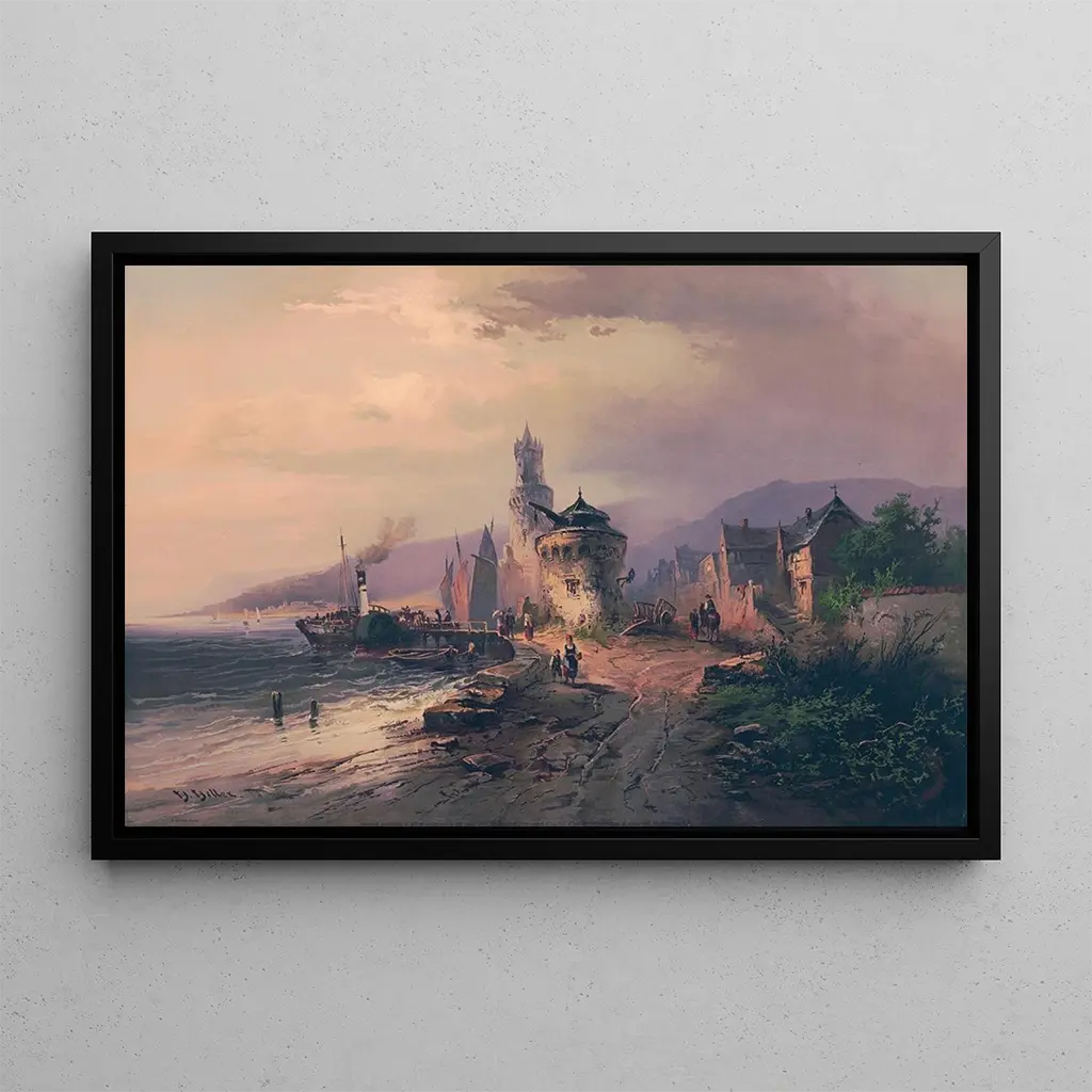 De kunstdruk van Andernach aan de Rijn, vervaardigd door Heinrich Hiller, brengt ons naar het hart van een historisch landschap waar de rivier majestueus kronkelt. De zachte tinten van het water vermengen zich met de reflecties van oude gebouwen, waardoor een rustige en nostalgische sfeer ontstaat. De techniek van Hiller, die realisme en romantiek combineert, laat toe de ziel van deze Duitse stad te voelen. Elk detail, van de zeilen van de boten tot de bomen langs de rivier, wordt zorgvuldig weergegeven, waardoor de kijker wordt uitgenodigd om dit schilderij als een levendige scène te verkennen. Dit werk is een ware viering van de harmonie tussen mens en natuur.