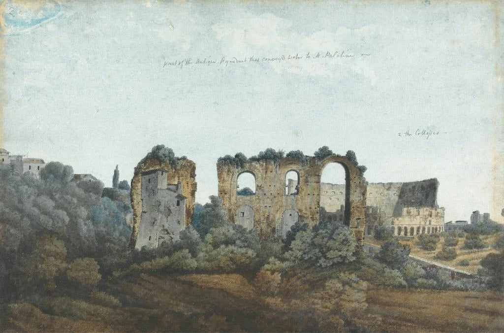 De aquaduct van Claude en het Colosseum - Thomas Jones