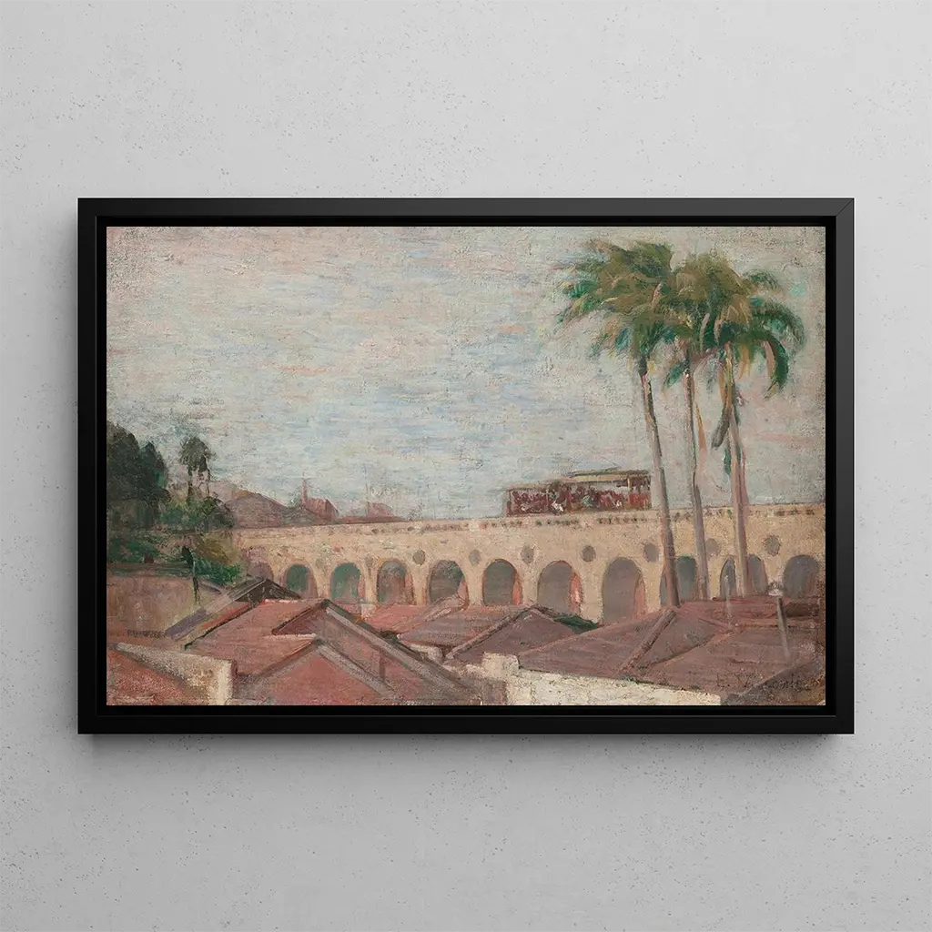 De kunstdruk Arcos da Lapa van Eliseu Visconti roept een moment op dat stil lijkt te staan in de tijd, waarin de majestueuze architectuur zich mengt met het levendige leven van Rio de Janeiro. De imposante bogen, badend in warme en heldere tinten, lijken de kijker uit te nodigen om onder te dompelen in de bruisende sfeer van de stad. De techniek van de kunstenaar, die aquarel en olie combineert, creëert een sfeer die zowel zacht als dynamisch is, en vangt de essentie van dit iconische monument. De minutieuze details van de omliggende gebouwen en voorbijgangers voegen een narratieve dimensie toe, waardoor dit doek levendig en boeiend wordt.