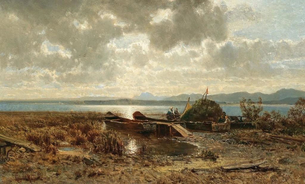 Robert Russ, schilder actief aan het einde van de 19e eeuw, wordt vaak geassocieerd met de Duitse impressionistische beweging. Geïnspireerd door de landschappen van zijn geboorteland, wist hij de schoonheid van natuurlijke scènes vast te leggen met een unieke gevoeligheid. Soir au Chiemsee illustreert zijn talent om licht en sfeer weer te geven, essentiële elementen van zijn werk. In een tijd waarin kunst zich bevrijdt van academische conventies, onderscheidt Russ zich door zijn vermogen om emoties over te brengen via de natuur, waardoor hij een belangrijke figuur is binnen het impressionisme in Duitsland.