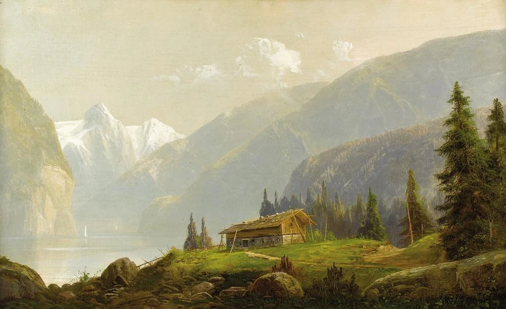 Hermann Ottomar Herzog, Duitse schilder uit de 19e eeuw, wordt erkend om zijn romantische landschappen die de schoonheid van de Alpen en andere natuurlijke regio's vastleggen. Geïnspireerd door de grote meesters van zijn tijd, heeft Herzog een persoonlijke stijl ontwikkeld, die realisme en poëzie combineert. Zijn artistieke parcours wordt gekenmerkt door reizen door Europa, waar hij inspiratie haalde uit de indrukwekkende landschappen die hij ontmoette. Zijn werk heeft een belangrijke rol gespeeld in de evolutie van het landschapsschilderen, en zijn nalatenschap leeft voort in zijn doeken, die nog steeds kunstliefhebbers blijven verbazen.