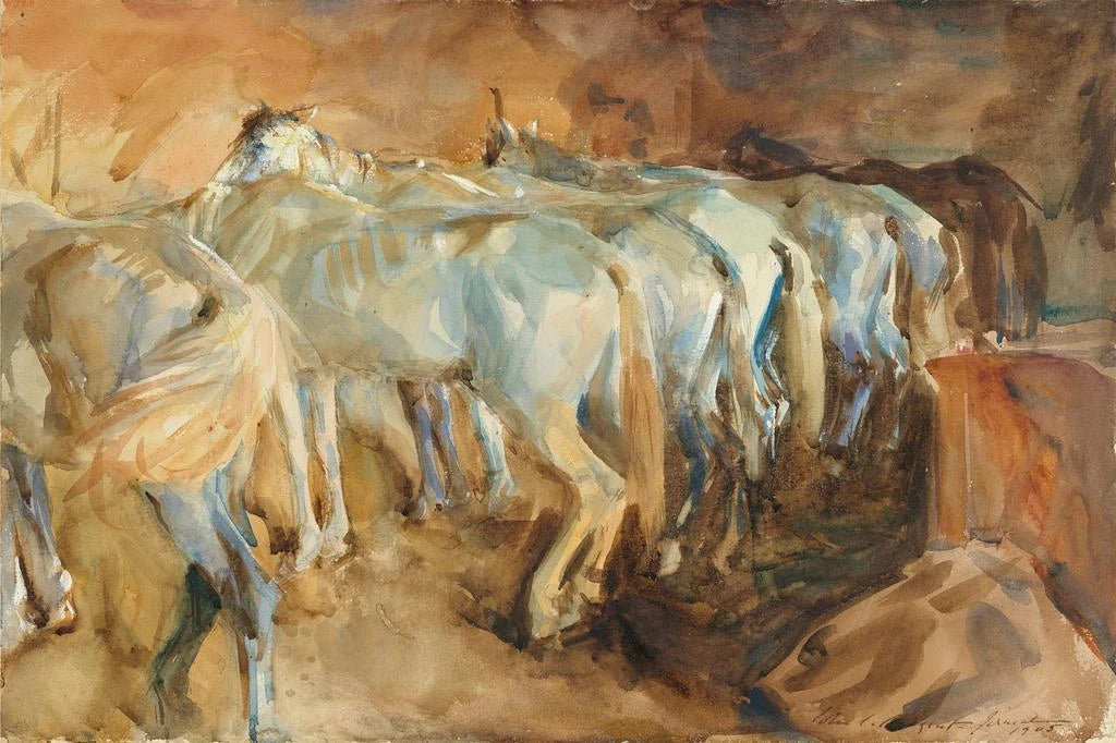 John Singer Sargent, peintre américain d'origine italienne, est reconnu pour son habileté à capturer la lumière et le mouvement. Actif à la fin du XIXe et au début du XXe siècle, il a été influencé par le réalisme et l'impressionnisme, intégrant des éléments de ces styles dans son propre travail. Sargent a voyagé à travers l'Europe et le Moyen-Orient, s'inspirant des paysages et des cultures qu'il rencontrait. Son œuvre "Chevaux de bus à Jérusalem" illustre parfaitement son talent pour représenter des scènes de la vie quotidienne, tout en mettant en avant la beauté des interactions humaines et animales dans un cadre urbain.
