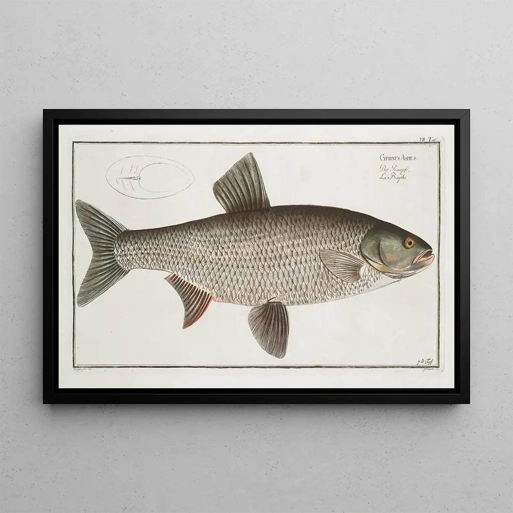 Source: Cyprinus Aspius L'Aspius : een ode aan de waterachtige schoonheid De kunstdruk van Cyprinus Aspius L'Aspius, vervaardigd door Marcus Elieser Bloch, dompelt ons onder in een fascinerende waterwereld. Dit schilderij, rijk aan details, benadrukt de majesteit van de asp, een vis met zilverkleurige glans, die zich beweegt in zijn natuurlijke habitat. De levendige kleuren en de delicate nuances van blauw en groen creëren een rustige en kalmerende sfeer. De techniek van de kunstenaar, die precisie en gevoeligheid combineert, laat de vloeiendheid van het water en de gratie van de beweging van de vis voelen. Bloch slaagt erin de essentie van het waterleven vast te leggen en nodigt de kijker uit om de schoonheid van de natuur te bewonderen. Marcus Elieser Bloch : een pionier in de illustratie van dieren Marcus Elieser Bloch, geboren in 1723, wordt erkend als een van de eerste illustratoren van dieren. Werkend voornamelijk in de 18e eeuw, wist hij wetenschap en kunst te combineren, en produceerde hij werken die de geschiedenis van de illustratie hebben beïnvloed. Geïnspireerd door de wetenschappelijke ontdekkingen van zijn tijd, wijdde Bloch zijn leven aan de studie van vissen, en maakte hij platen die referenties zijn geworden in het veld. Zijn belangrijkste werk, "Ichthyologie", heeft bijgedragen aan een beter begrip van de diversiteit van waterdieren en heeft een blijvende impact gehad op de zoologie. Het belang van zijn werk ligt in zijn vermogen om wetenschappelijke precisie en esthetiek te verenigen, waardoor zijn kunstdrukken unieke stukken worden. Een decoratief stuk met vele voordelen De kunstdruk van Cyprinus Aspius L'Aspius is een ideaal decoratief stuk voor elke interieur, of het nu een woonkamer, kantoor of slaapkamer is. De kwaliteit van de afdruk en de trouw aan de originele details maken het een perfecte keuze voor kunst- en natuurliefhebbers. Dit schilderij brengt een vleugje sereniteit en elegantie in uw inrichting, terwijl het de nieuwsgierigheid en bewondering van uw gasten opwekt. Met zijn onmiskenbare esthetische aantrekkingskracht is deze doek niet alleen een visueel accent, maar ook een uitnodiging tot het bewonderen van de natuurlijke schoonheid.