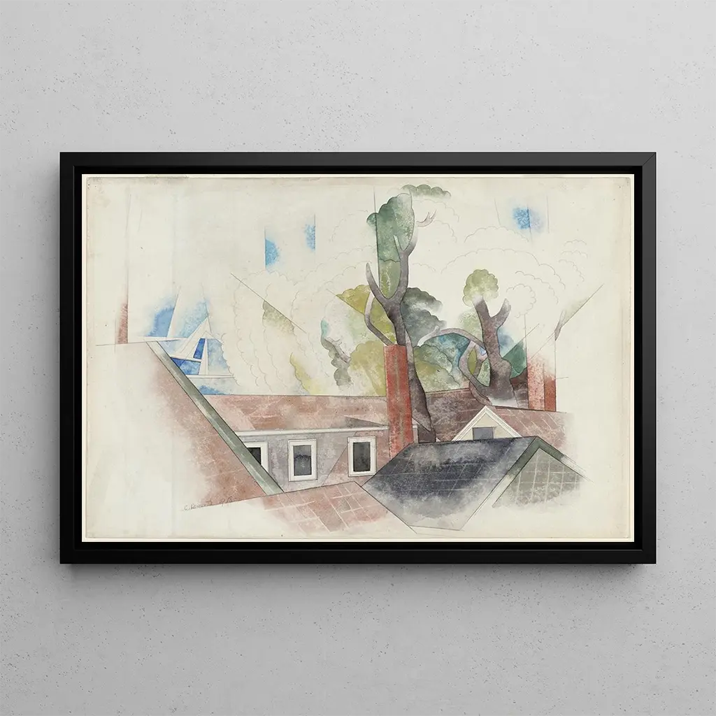De kunstdruk van "Toits en bomen" is een perfecte aanvulling op uw interieurdecoratie, of het nu gaat om een woonkamer, kantoor of slaapkamer. De afdrukkwaliteit garandeert een opmerkelijke fideliteit aan de nuances en details van het originele werk, waardoor een vleugje verfijning aan uw ruimte wordt toegevoegd. Dit schilderij roept een sfeer van rust en sereniteit op, uitnodigend tot contemplatie en dagdromen. Door deze canvas in uw interieur te integreren, creëert u een inspirerende omgeving die de harmonie tussen natuur en architectuur viert, terwijl u tevens het artistieke erfgoed van Charles Demuth eert.