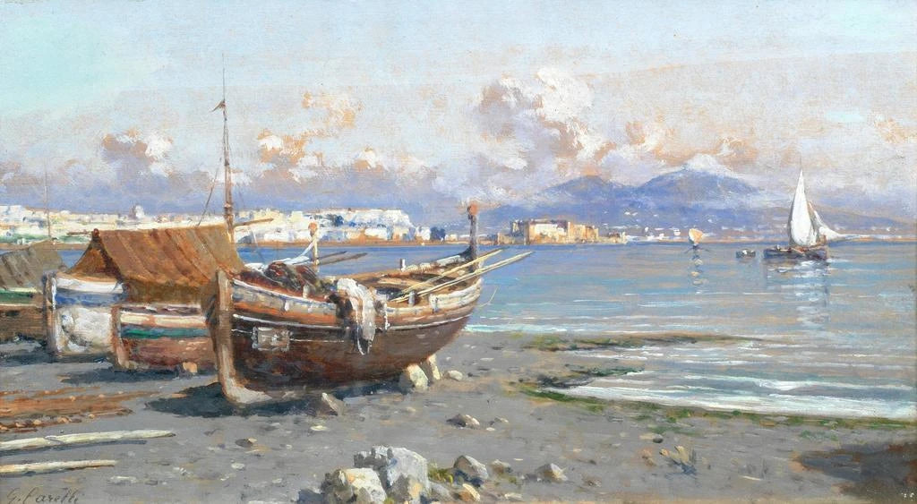 La Baai van Napels: een levendig schilderij vol leven en licht De Baai van Napels, een iconisch werk van Giuseppe Carelli, brengt de kijker naar een mediterraan landschap dat badend in licht is. De heldere kleuren, variërend van de diepe blauwen van de zee tot de weelderige groenen van de heuvels, creëren een levendige en betoverende sfeer. Carelli's techniek, gekenmerkt door vloeiende penseelstreken en een minutieuze aandacht voor details, brengt elk element van het schilderij tot leven, van de rustig varende zeilboten tot de gekleurde huizen langs de baai. Dit kunstwerk nodigt uit tot contemplatie, roept herinneringen op aan vakanties en sereniteit. Giuseppe Carelli: een meester van het Italiaanse landschap Giuseppe Carelli, actief in de 19e eeuw, wordt erkend om zijn maritieme landschappen die de schoonheid van de Italiaanse kust vastleggen. Geïnspireerd door de romantische beweging, wist hij realisme en poëzie te combineren in zijn werken. Carelli bracht een groot deel van zijn carrière door in Napels, waar hij werd geïnspireerd door het unieke licht van de regio en het dagelijks leven van vissers. Zijn stijl, zowel levendig als delicaat, markeerde zijn tijd en blijft invloed uitoefenen op hedendaagse kunstenaars. De Baai van Napels is een van zijn meesterwerken, die perfect zijn talent toont om de natuurlijke schoonheid van zijn land te eren. Een decoratief stuk met vele voordelen De kunstdruk van De Baai van Napels is een ideaal decoratief stuk om je interieur te verrijken, of het nu in een woonkamer, kantoor of slaapkamer is. De kwaliteit van de afdruk garandeert een opmerkelijke trouw aan de kleuren en details van het originele werk, en brengt een vleugje elegantie en sereniteit in je ruimte. Dit schilderij, met zijn onmiskenbare esthetische aantrekkingskracht, stimuleert gesprekken en nodigt uit tot ontsnapping. Door voor dit doek te kiezen, kies je voor een tijdloze decoratie die je gasten zal betoveren en je een moment van dagelijkse contemplatie biedt.