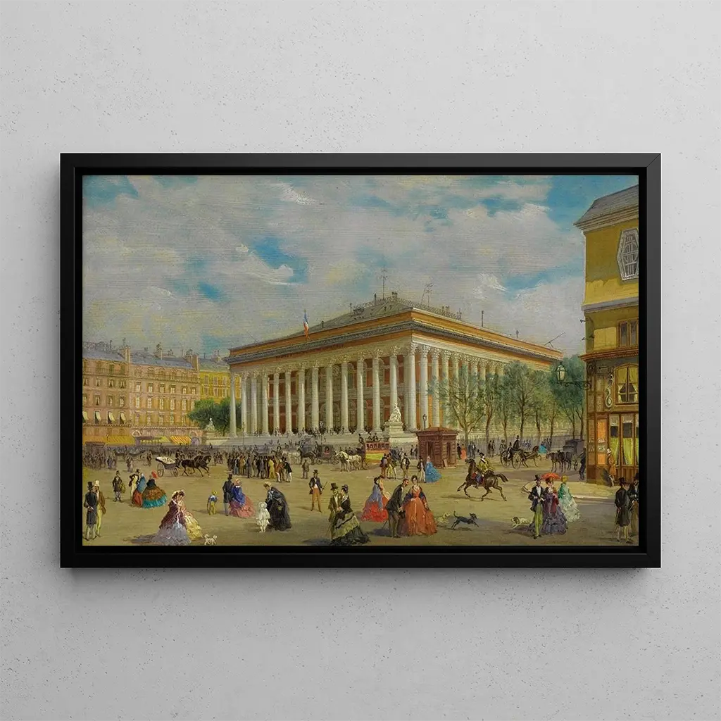 De reproductie van De Bourse is een ideaal decoratief stuk voor diverse ruimtes, of het nu een woonkamer, kantoor of slaapkamer betreft. De afdrukkwaliteit garandeert een opmerkelijke fideliteit aan de details van het originele werk, waardoor de rijkdom aan kleuren en texturen volledig tot zijn recht komt. Dit schilderij brengt een vleugje elegantie en dynamiek in uw interieur, terwijl het gesprekken over kunst en geschiedenis stimuleert. Door voor dit doek te kiezen, investeert u in een kunstwerk dat niet alleen uw ruimte verfraait, maar ook de vibrerende energie van een vervlogen tijdperk oproept.