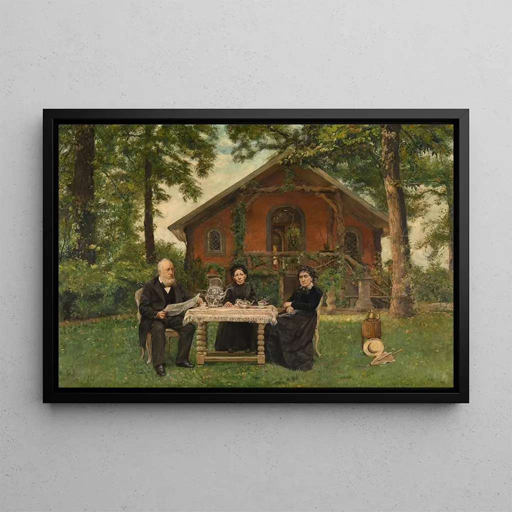 La Famille Cuperus : een intieme en warme kunstdruk De La Famille Cuperus, een iconisch werk van Piet Verhaert, legt een moment van familiale tederheid vast. In dit doek zijn de personages zorgvuldig geplaatst, waardoor een sfeer van gezelligheid en nabijheid ontstaat. De warme kleuren, gedomineerd door aardetinten en gouden nuances, hullen de scène in een zachte lichtstraal, waardoor de voelbare emotie tussen de gezinsleden wordt versterkt. Verhaerts techniek, die realisme combineert met impressionistische accenten, laat de diepte van menselijke relaties voelen. Elk detail, van de glimlach tot de gebaren, vertelt een verhaal en nodigt de kijker uit om zich onder te dompelen in dit levendige schilderij. Piet Verhaert : een meester van het realisme met een focus op emoties Piet Verhaert, Belgische kunstenaar uit de 19e eeuw, staat bekend om zijn vermogen om de essentie van menselijke relaties vast te leggen in zijn kunstwerken. Geïnspireerd door de realistische beweging, opereert hij in een periode waarin kunst de weerspiegeling van het dagelijks leven wil zijn. Verhaert wist zich te omringen met modellen uit zijn omgeving, met als doel scènes uit het dagelijks leven te immortalisereren. Zijn werk, hoewel minder bekend dan dat van sommige tijdgenoten, heeft zijn tijd gekenmerkt door zijn gevoeligheid en aandacht voor details. De La Famille Cuperus is een perfect voorbeeld van zijn talent en onderstreept het belang van familiebanden in de samenleving van zijn tijd. Een decoratief kunstdruk met vele voordelen De reproductie van La Famille Cuperus is een decoratief stuk dat elk interieur kan verrijken, of het nu in een woonkamer, kantoor of slaapkamer is. De afdrukkwaliteit en de trouw aan het originele werk garanderen een uitzonderlijke esthetische uitstraling. Dit doek, met zijn warme kleurenpalet en ontroerend onderwerp, brengt een gezellige en gastvrije sfeer in uw ruimte. Door te kiezen voor deze kunstdruk, kiest u voor een decoratie die niet alleen verfraait, maar ook emoties en herinneringen oproept, waardoor elk blikmoment een moment van contemplatie wordt.