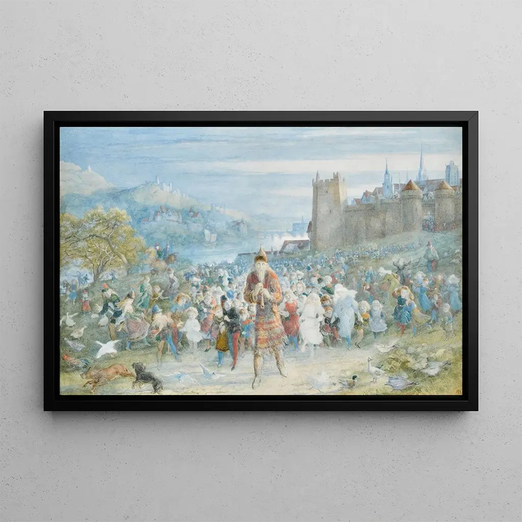 De kunstdruk van het Joueur de Flûte de Hamelin brengt ons in een magische wereld, waar muziek en magie samenkomen. De levendige kleuren en de minutieuze details van het doek van Richard Doyle vangen de essentie van een volksverhaal, dat zowel vreugde als melancholie oproept. De delicate aquareltechniek, kenmerkend voor Doyle, brengt de personages en hun emoties tot leven en creëert een levendige en boeiende sfeer. Dit werk, geïnspireerd door een Duitse legende, herinnert ons aan de kracht van muziek en de gevolgen van hebzucht, terwijl het ons onderdompelt in een wereld van fantasie.