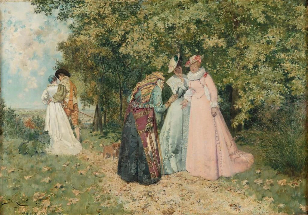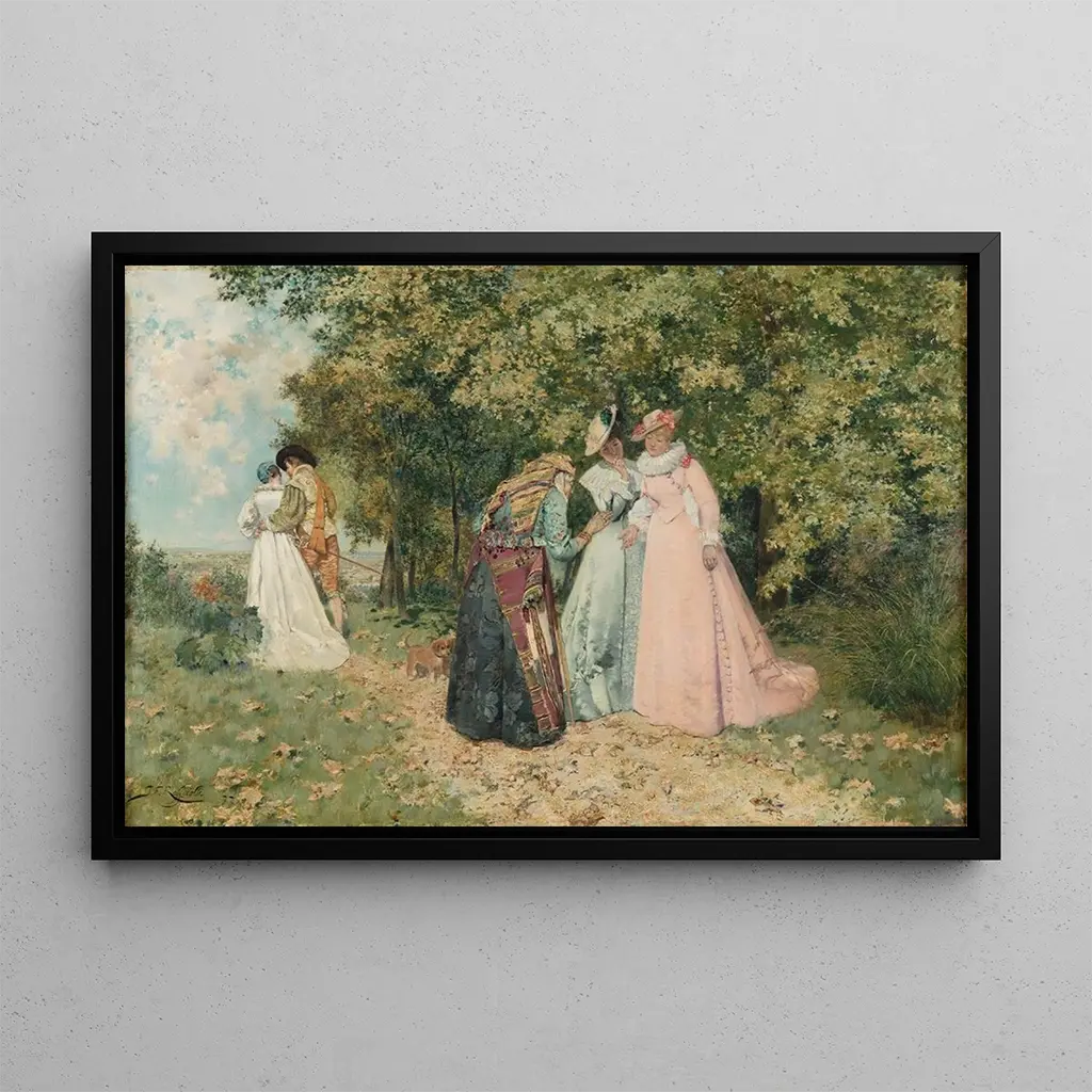 "De goede voorspelling" van Jean François Raffaëlli vangt met finesse een scène uit het Parijse leven, waar hoop en nieuwsgierigheid samenkomen in een intieme setting. De aardetinten en de lichte accenten creëren een warme sfeer, terwijl de personages, bevroren in een moment van uitwisseling, lijken een verhaal te vertellen. De techniek van Raffaëlli, die realisme en impressionisme combineert, maakt het mogelijk de essentie van het moment vast te leggen, waardoor dit doek bijzonder levendig wordt. Elk detail, van de uitdrukking van de gezichten tot de gebaren van de handen, draagt bij aan een onderdompeling in het dagelijks leven van de Parijzenaars.