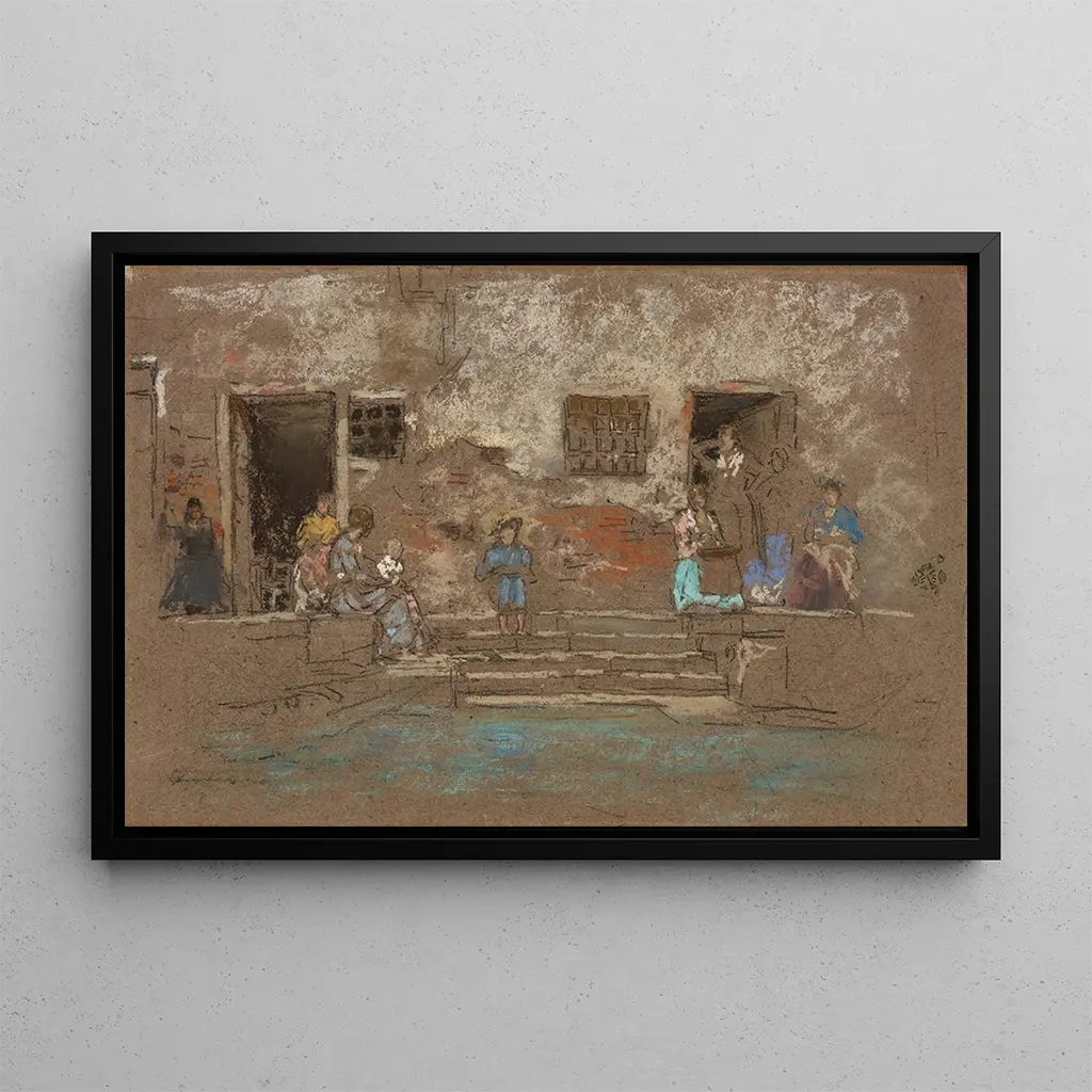 Les trappen: een verkenning van licht en schaduw In dit fascinerende kunstwerk nodigt James Abbott McNeill Whistler ons uit om de nuances van licht en schaduw te verkennen door middel van een delicate compositie. De trappen, die lijken te leiden naar een mysterieuze wereld, zijn doordrenkt met subtiele tinten grijs en blauw, waardoor een sfeer ontstaat die zowel melancholisch als contemplatief is. De olieverftechniek stelt Whistler in staat te spelen met reflecties en texturen, waardoor elke trede bijna tastbaar wordt. Dit schilderij roept een gevoel van introspectie en rust op, en moedigt de kijker aan zich onder te dompelen in deze raadselachtige scène. James Abbott McNeill Whistler: de meester van toon en kleur Whistler, een iconische figuur van de impressionistische beweging, wist de schoonheid van kleur te combineren met een innovatieve benadering van compositie. Actief aan het einde van de 19e eeuw, werd hij beïnvloed door Europese kunststromingen, met name japonisme, dat een diepe indruk op zijn stijl heeft gemaakt. Zijn werk wordt vaak gekenmerkt door een zoektocht naar visuele harmonie en een bijzondere aandacht voor lichteffecten. Whistler speelde ook een sleutelrol in de evolutie van de moderne kunst door de conventies van zijn tijd uit te dagen en het idee te promoten dat kunst vooral een esthetische ervaring moest zijn. Een decoratief kunstwerk met vele voordelen De kunstdruk van het schilderij Les marches is een perfecte keuze om een vleugje elegantie aan uw interieurdecoratie toe te voegen. Of het nu in een woonkamer, kantoor of slaapkamer is, dit doek past bij diverse stijlen, van klassiek tot modern. De afdrukkwaliteit garandeert een opmerkelijke fideliteit aan de nuances en details van het originele werk, terwijl het een onmiskenbare esthetische aantrekkingskracht biedt. Door te kiezen voor deze kunstdruk verrijkt u uw ruimte met een kunstwerk dat tot nadenken stemt en bewondering oproept, terwijl u een serene en inspirerende sfeer creëert.