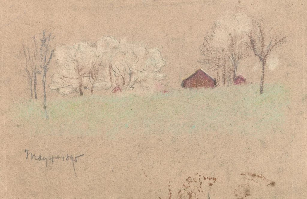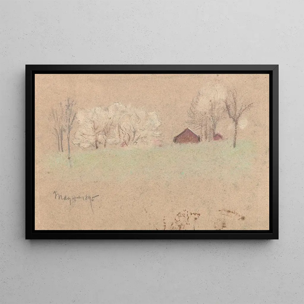 De La Grange Rouge, een iconisch werk van Arthur Bowen Davies, roept een idyllisch tafereel op waarin natuur en architectuur op subtiele wijze samenkomen. De warme, aardse kleuren, gemengd met groene accenten, creëren een rustige en uitnodigende sfeer. De compositie, evenwichtig en harmonieus, nodigt de kijker uit om elk detail te verkennen, van de texturen van het gebouw tot de nuances van het omliggende landschap. De olieverftechniek zorgt voor een subtiele weergave van het licht, waardoor de schoonheid van deze schuur bijna levendig lijkt. Dit werk, zowel eenvoudig als poëtisch, brengt de kijker naar een wereld waarin de tijd lijkt stil te staan.