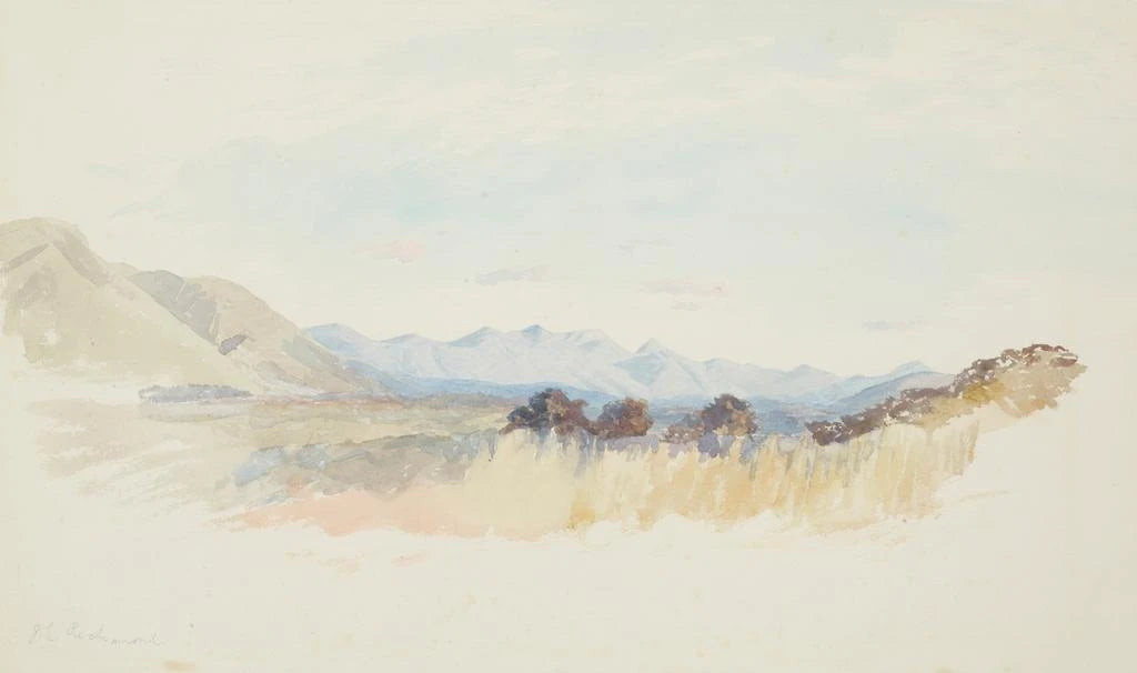 James Crowe Richmond, actief in de 19e eeuw, is een Britse kunstenaar die bekend staat om zijn evocatieve landschappen. Geïnspireerd door de prerafaëlietenbeweging, streeft hij ernaar de natuurlijke schoonheid vast te leggen met een bijna fotografische precisie. Richmond heeft over de hele wereld gereisd, maar in Nieuw-Zeeland vond hij een onuitputtelijke inspiratie. Zijn werken, zoals "Share keten", getuigen van zijn inzet om de natuur in al haar pracht weer te geven. In die tijd was de landschapskunst volop in ontwikkeling, en Richmond wist zich te onderscheiden door zijn unieke aanpak, die realisme en romantiek combineert.