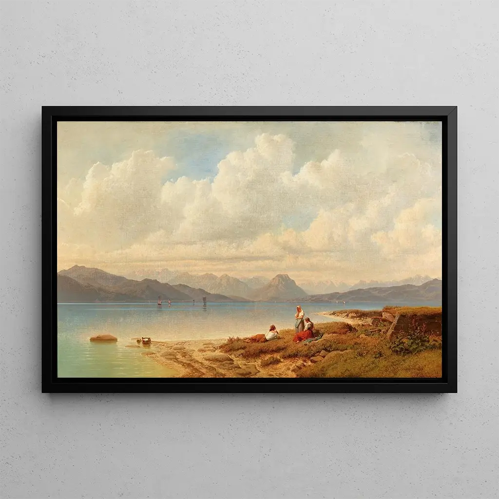 Partie aan het Bodenmeer: een reflectie van sereniteit en natuur De kunstdruk van "Partie aan het Bodenmeer" roept een rustige scène op, waar het glinsterende water van het meer zich mengt met de omliggende landschappen. De zachte en rustgevende kleuren, variërend van diepe blauwen tot delicate groenen, creëren een sfeer van rust. Maximilian Haushofer, door zijn meesterschap in schilderkunst, slaagt erin de natuurlijke schoonheid van deze iconische plek over te brengen. De minutieuze details van de zeilboten en de oevers nodigen uit tot een serene contemplatie, waarbij de kijker wordt ondergedompeld in een moment van vrede aan de waterkant. Maximilian Haushofer: een kunstenaar van romantisch landschap Maximilian Haushofer, Duitse schilder uit de 19e eeuw, staat bekend om zijn weergaven van idyllische landschappen, vooral die van het Bodenmeer. Zijn romantische stijl, beïnvloed door de natuur en het licht, stelde hem in staat vluchtige momenten van schoonheid vast te leggen. Haushofer wist de sfeer van de plaatsen die hij schilderde te absorberen, en zijn werken worden vaak beschouwd als getuigenissen van de harmonie tussen mens en natuur. Door de landschappen van zijn tijd te verkennen, heeft hij bijgedragen aan de ontwikkeling van landschapsschilderkunst in Duitsland en heeft hij een blijvende erfenis achtergelaten. Een decoratief stuk met vele voordelen De kunstdruk van "Partie aan het Bodenmeer" is een decoratieve keuze die uw interieur verrijkt, of het nu in een woonkamer, kantoor of slaapkamer is. De kwaliteit van de afdruk en de trouw aan de originele nuances maken het tot een aantrekkelijk middelpunt. Door een vleugje sereniteit en natuur aan uw ruimte toe te voegen, creëert dit doek een ontspannende en inspirerende sfeer. Het past moeiteloos in diverse decoratiestijlen en biedt een visueel ontsnappingsmoment bij elke blik op dit boeiende kunstwerk.