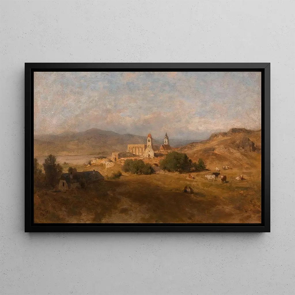 Dürnstein : een schilderij doordrenkt met sereniteit De Dürnstein kunstdruk van Eduard Peithner von Lichtenfels beeldt een rustgevend landschap af, waar de majesteit van de bergen zich mengt met de zachtheid van de rivieren. De pastelkleuren, gedomineerd door tinten blauw en groen, creëren een sfeer van rust en harmonie. De techniek van de kunstenaar, die delicate penseelstreken gebruikt, brengt elk element van het schilderij tot leven, van drijvende wolken tot fonkelende reflecties op het water. Dit schilderij nodigt uit tot een stille contemplatie, waarbij de kijker bijna het gefluister van de natuur kan horen. Eduard Peithner von Lichtenfels : een getuige van zijn tijd Eduard Peithner von Lichtenfels is een Oostenrijkse schilder uit de 19e eeuw, bekend om zijn romantische landschappen die de natuurlijke schoonheid van Oostenrijk vastleggen. Geïnspireerd door de romantische beweging, wist hij werken te creëren die diepe emoties oproepen en een spirituele connectie met de natuur tot stand brengen. Zijn carrière beslaat meerdere decennia, waarin hij diverse thema's verkende, maar altijd met bijzondere aandacht voor details en licht. Dürnstein, een van zijn emblematische werken, illustreert perfect zijn stijl en zijn inzet voor een getrouwe weergave van landschappen. Een decoratief stuk met vele voordelen De kunstdruk van het Dürnstein schilderij is een ideaal decoratief stuk voor elke kamer in uw huis, of het nu in een woonkamer, kantoor of slaapkamer is. De kwaliteit van de afdruk en de trouw aan de originele kleuren maken het een aantrekkelijke keuze voor liefhebbers van klassieke kunst. Door deze doek aan uw inrichting toe te voegen, brengt u een vleugje sereniteit en elegantie in uw ruimte. Dit schilderij verfraait niet alleen uw interieur; het nodigt ook uit tot reflectie en contemplatie, waardoor elk blik een nieuwe ervaring wordt.