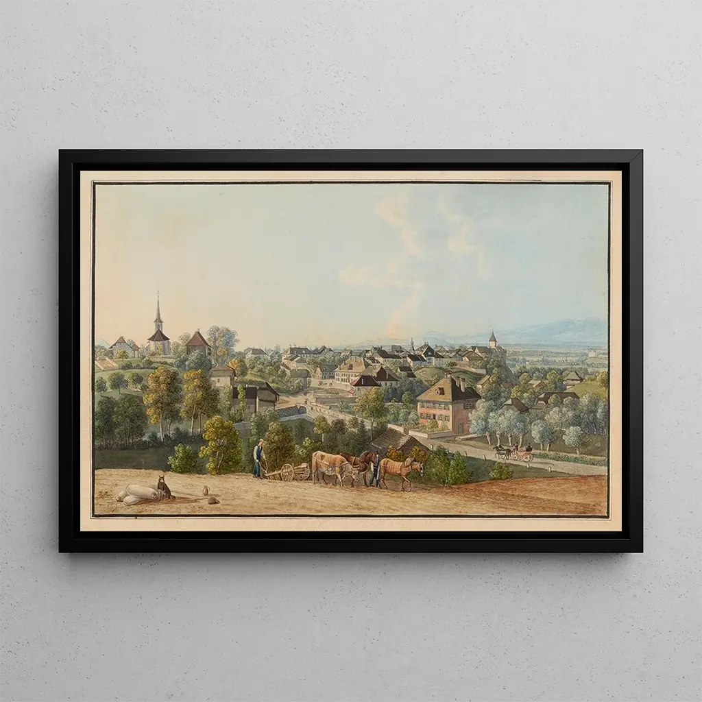 In deze kunstdruk van Échallens aan de zuidkant vangt David Alois Schmid de schoonheid van een landschap dat baadt in het gouden zonlicht. De levendige kleuren en de delicate nuances van groen en blauw roepen een rustige en sereuze sfeer op. De harmonieuze compositie, waarin elk element zijn plaats vindt, nodigt de kijker uit om zich onder te dompelen in deze landelijke scène. Schmid's techniek, die precisie en gevoeligheid combineert, brengt deze schilderij tot leven en transformeert een eenvoudig landschap in een waar kunstwerk dat resoneert met de ziel van degenen die het bekijken.