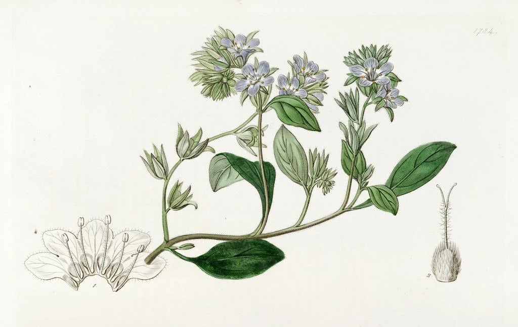 In dit boeiende kunstwerk dompelt Sydenham Edwards ons onder in een fascinerend botanisch universum. Het doek, rijk aan details, toont een harmonieuze compositie waarin de levendige kleuren van de planten verweven zijn met delicate nuances. De aquareltechniek, vakkundig beheerst, geeft het geheel een zachte en levendige sfeer, die de kijker uitnodigt tot aandachtige contemplatie. Elk blad, elke bloemblad lijkt een verhaal te vertellen en onthult de vergankelijke schoonheid van de natuur. Eutoca verloren wordt zo een symbool van de bloemrijke diversiteit, een eerbetoon aan de rijkdom van de botanica.