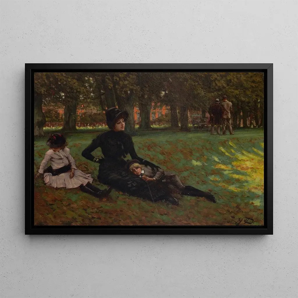 James Tissot, Franse schilder uit de 19e eeuw, wordt erkend om zijn talent om scènes uit het dagelijks leven en historische momenten met opmerkelijke precisie vast te leggen. Geïnspireerd door de impressionistische beweging, wist hij techniek en verhaalvertelling te combineren, waardoor zijn werken levendig en boeiend worden. Tissot bracht een deel van zijn leven door in Engeland, waar hij gefascineerd was door de Britse geschiedenis en cultuur. "Hampton Court" is een perfect voorbeeld van zijn vaardigheid om locaties vol geschiedenis te vereeuwigen, terwijl hij een uniek perspectief op de samenleving van zijn tijd biedt.