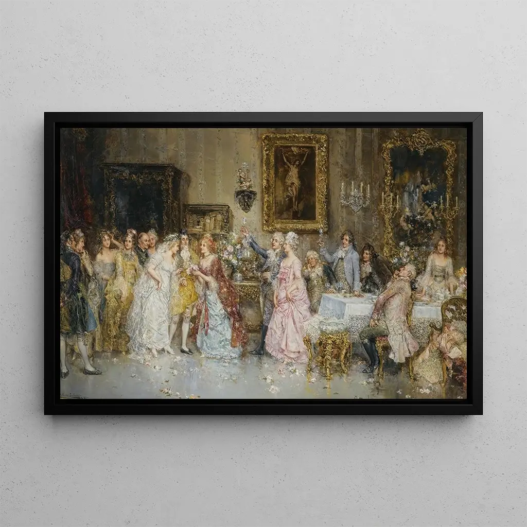 Le Banquet nuptial : een viering van het leven en de liefde De Le Banquet nuptial van Juan Pablo Salinas is een levendig kunstwerk dat vreugde en intimiteit van een viering oproept. De warme en heldere kleuren, zoals diepe roodtinten en stralende goudtinten, mengen zich om een feestelijke en uitnodigende sfeer te creëren. De dynamische compositie, waarin de personages in een dans van gezelligheid verstrengeld zijn, trekt onmiddellijk de aandacht en nodigt uit tot contemplatie. De techniek van Salinas, die realisme combineert met impressionistische accenten, brengt de details tot leven, van lachende gezichten tot delicieus gepresenteerde gerechten op de tafel. Elk element lijkt een verhaal te vertellen, waardoor de kijker wordt ondergedompeld in de bruisende sfeer van een gedeeld moment. Juan Pablo Salinas : een meester van het Latijns-Amerikaans realisme Juan Pablo Salinas, een kunstenaar van Latijns-Amerikaanse afkomst, wist de essentie van de cultuur en tradities van zijn tijd vast te leggen in zijn werken. Geboren aan het begin van de 20e eeuw, werd hij beïnvloed door Europese kunststromingen, terwijl hij elementen van zijn culturele erfgoed integreerde. Salinas ontwikkelde zich in een context waarin kunst een middel was om lokale identiteiten en verhalen uit te drukken, wat hem onderscheidde door zijn unieke stijl. De Le Banquet nuptial getuigt van deze fusie tussen classicisme en moderniteit, terwijl het de gemeenschaps- en familiewaarden die belangrijk zijn in zijn cultuur viert. Een decoratief stuk met vele voordelen De kunstdruk van De Le Banquet nuptial is een ideaal decoratief stuk om je interieur te verrijken, of het nu in een woonkamer, kantoor of slaapkamer is. De afdrukkwaliteit garandeert een opmerkelijke trouw aan de kleuren en details van het origineel, waardoor je van het werk kunt genieten alsof je tegenover het origineel staat. Met zijn esthetische aantrekkingskracht wordt dit doek een boeiend middelpunt dat gesprekken uitlokt en emoties oproept. Dit kunstwerk cadeau doen of jezelf cadeau doen, is de magie van een feestelijk moment in je dagelijks leven uitnodigen, terwijl je een vleugje elegantie toevoegt aan je interieur.