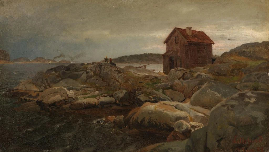 Hans Gude, Noorse schilder uit de 19e eeuw, staat bekend om zijn maritieme landschappen en weergaven van de Scandinavische natuur. Geïnspireerd door romantiek en realisme, wist hij de schoonheid van de Noorse kusten en alledaagse scènes vast te leggen. Gude studeerde aan de Kunstacademie van Düsseldorf, waar hij zijn unieke stijl ontwikkelde, die precisie en gevoeligheid combineert. Zijn carrière werd gekenmerkt door een reeks tentoonstellingen die bijdroegen aan het vestigen van zijn reputatie als een belangrijke kunstenaar van zijn tijd. De kunstdruk van Maison de pêcheur à Lillesand illustreert perfect zijn talent om licht en sfeer in maritieme landschappen te vangen.