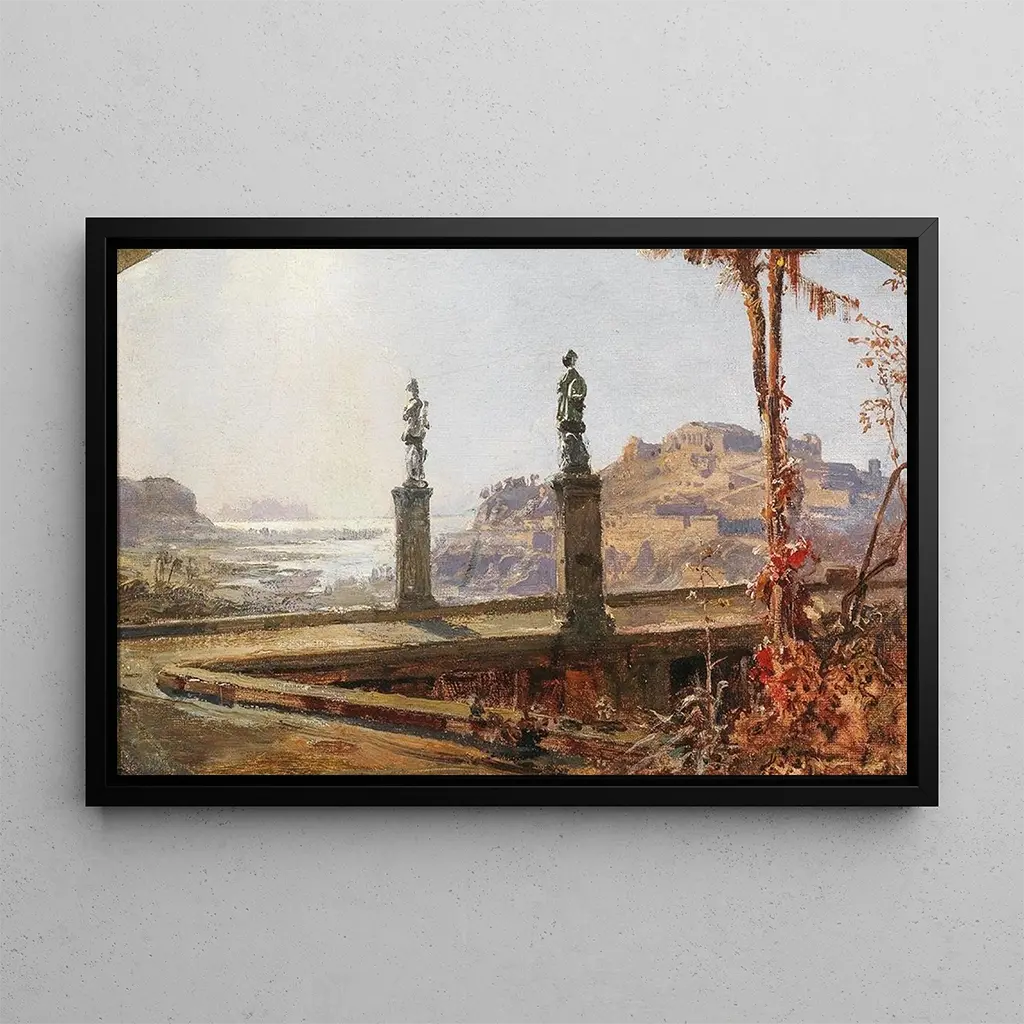 Ideaal landschap met tempel: een harmonie tussen natuur en architectuur De kunstdruk van Ideaal landschap met tempel van Christian Wilberg roept een wereld op waarin natuur en architectuur gracieus verweven zijn. Dit werk toont een weelderig landschap, waarin een majestueuze tempel oprijst te midden van dichte begroeiing. De levendige kleuren, variërend van stralende groenen tot aardetinten, creëren een sfeer van sereniteit en contemplatie. Wilbergs techniek, die realisme en idealisering combineert, nodigt de kijker uit te dromen van een vredige en harmonieuze plek, waar mens en natuur in perfecte symbiose samenleven. Christian Wilberg: een kunstenaar van het neoclassicisme Christian Wilberg, actief aan het einde van de achttiende eeuw en het begin van de negentiende eeuw, is een vertegenwoordiger van het neoclassicisme, een artistieke beweging die harmonie en evenwicht waardeert. Geïnspireerd door de grote meesters van de oudheid, probeert hij de ideale schoonheid vast te leggen in zijn landschappen. Zijn werken weerspiegelen een tijd waarin de kunst zich richt op klassieke waarden, terwijl hij elementen van de natuur integreert. Wilberg wist composities te creëren die de tijd overstijgen, waardoor hij een belangrijke figuur is in de geschiedenis van de landschapskunst. Een decoratief stuk met vele voordelen De kunstdruk van het schilderij Ideaal landschap met tempel is een decoratief stuk dat je leefruimte verrijkt, of het nu in een woonkamer, kantoor of slaapkamer is. De afdrukkwaliteit garandeert een uitzonderlijke fideliteit aan de details van het originele werk, waardoor je de artistieke visie van Wilberg volledig kunt waarderen. De esthetische aantrekkingskracht van dit doek, met zijn mengeling van natuur en architectuur, maakt het een perfecte keuze om een zen- en inspirerende sfeer te creëren. Het ophangen van deze kunstdruk bij je thuis is een uitnodiging voor een moment van rust en harmonie in je dagelijks leven.