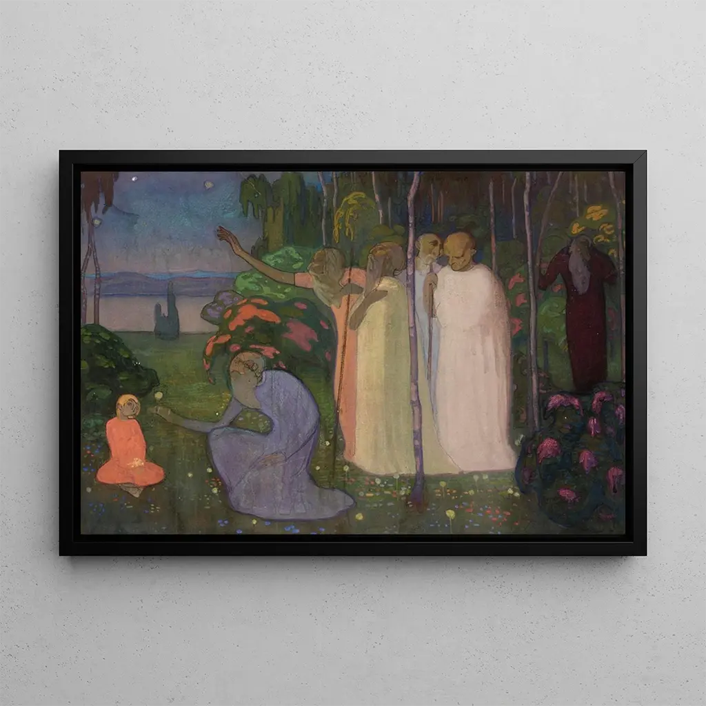 Jeunesse de Tüva Composition : een ode aan de natuur en cultuur In deze kunstdruk van Jeunesse de Tüva Composition dompelt Nikolai Triik ons onder in een levendige wereld waar natuur en cultuur samenkomen. De heldere kleuren en dynamische vormen roepen de vitaliteit van de jeugd en de harmonie met de omgeving op. De compositie, rijk aan details, nodigt de kijker uit om elk element te verkennen, van bloemmotieven tot menselijke figuren, die de verbinding tussen mens en natuurlijke omgeving symboliseren. De sfeer die uit dit werk straalt, is zowel vrolijk als contemplatief, en getuigt van de gevoeligheid van de kunstenaar. Nikolai Triik : een pionier van de Estische kunst Nikolai Triik, geboren in 1884, is een invloedrijke figuur in de Estische kunst van het begin van de 20e eeuw. Geïnspireerd door de symbolistische beweging en de modernistische stromingen, wist hij folkloristische elementen en nationale thema's in zijn werk te integreren. Triik speelde een sleutelrol in het bevestigen van de artistieke identiteit van Estland, vooral door zijn voorstellingen van de natuur en de lokale cultuur. Zijn creatieve periode wordt gekenmerkt door een voortdurende zoektocht naar nieuwe vormen van expressie, waardoor hij een essentiële kunstenaar is voor het begrijpen van de evolutie van de kunst in Estland. Een decoratief stuk met vele voordelen De kunstdruk van Jeunesse de Tüva Composition is een boeiende decoratieve keuze voor elke woonruimte. Of het nu in een woonkamer, slaapkamer of kantoor is, dit schilderij brengt een vleugje originaliteit en kleur. De afdrukkwaliteit garandeert een opmerkelijke trouw aan het originele werk, terwijl het een onmiskenbare esthetische aantrekkingskracht biedt. Door deze doek in uw inrichting te integreren, creëert u een inspirerende en warme sfeer, perfect om creativiteit en reflectie te stimuleren.