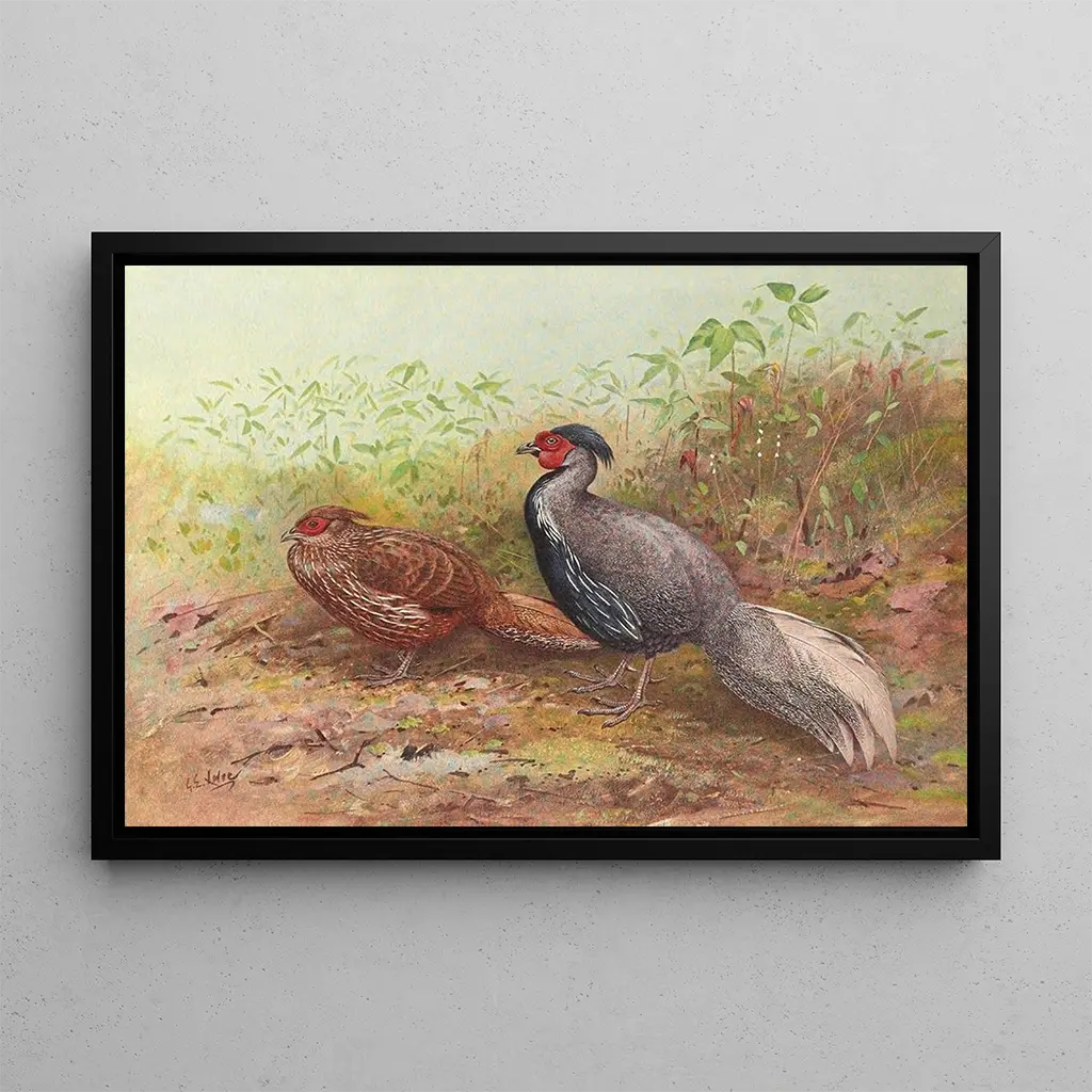 Kaleege-lijn: een dans van kleuren en vormen De Kaleege-lijn kunstdruk van George Edward Lodge is een werk dat onmiddellijk de aandacht trekt door zijn levendige tinten en dynamiek. Dit schilderij benadrukt een majestueuze vogel, waarvan de veren onder het licht glanzen en een fascinerend spel van reflecties creëren. De techniek van Lodge, die precisie in details combineert met vloeiendheid in lijnen, brengt deze vogel tot leven in zijn natuurlijke habitat. De sfeer die uit dit doek straalt, is zowel sereen als betoverend, en nodigt de kijker uit om onder te dompelen in een wereld waar de natuur heerst. George Edward Lodge: een pionier in de vogelkunst George Edward Lodge, geboren in 1860, wordt erkend als een van de grote meesters van de vogelkunst. Geïnspireerd door de Britse landschappen en de fauna die ze herbergen, wist hij zijn liefde voor de natuur te combineren met een onmiskenbaar artistiek talent. Actief in het begin van de 20e eeuw, heeft Lodge bijgedragen aan het populair maken van vogelobservatie door middel van zijn kunst, terwijl hij deel uitmaakte van een bredere beweging van waardering voor de natuur. Zijn werken, vaak doordrenkt met realisme, getuigen van een tijd waarin de relatie tussen mens en natuur centraal stond in artistieke bezigheden. Een decoratief stuk met vele voordelen De Kaleege-lijn kunstdruk is een decoratief stuk dat harmonieus integreert in diverse ruimtes, of het nu een woonkamer, kantoor of slaapkamer is. De kwaliteit van de afdruk garandeert een opmerkelijke fideliteit aan de kleuren en details van het originele werk, en biedt zo een onmiskenbare esthetische aantrekkingskracht. Door voor dit doek te kiezen, brengt u een vleugje elegantie en natuur in uw interieur, terwijl u het artistieke erfgoed van George Edward Lodge eert. Het is een werk dat ongetwijfeld de bewondering van uw gasten zal wekken en uw decor zal verrijken.