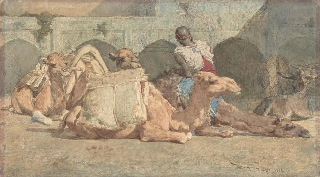 Kamelen rusten in Tanger - Mariano Fortuny Marsal
