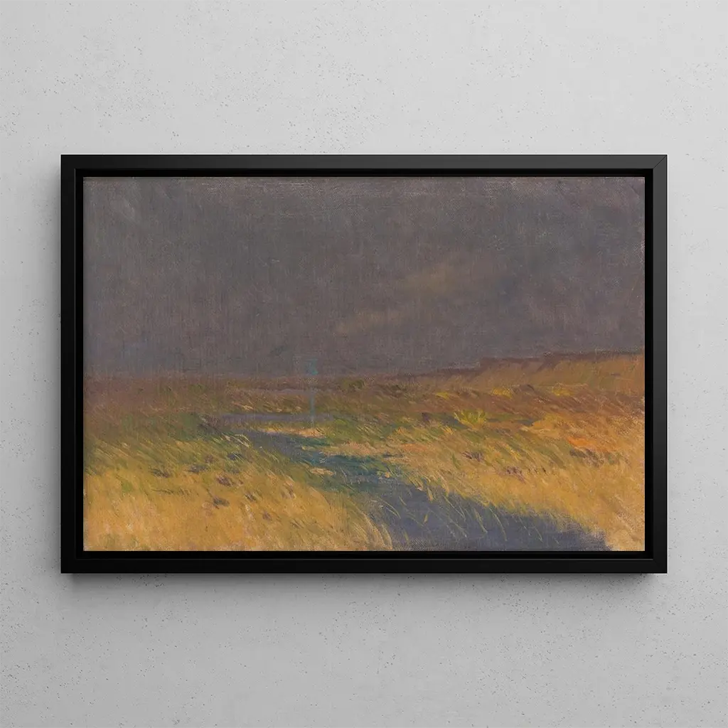 Paysage voor de avond: een ode aan de schemering schoonheid Paysage voor de avond, werk van Ferdinand Katona, dompelt ons onder in een magische sfeer waarin de dag langzaam plaatsmaakt voor de nacht. De warme, gouden kleuren van de schemering mengen zich met de opkomende schaduwen, waardoor een levendig en poëtisch schilderij ontstaat. De techniek van Katona, gekenmerkt door vloeiende en expressieve penseelstreken, brengt dit landschap tot leven, waarbij elk element lijkt te vibreren onder het afnemende licht. Dit doek roept een gevoel van rust en melancholie op, en nodigt uit tot een contemplatieve pauze tegenover de vergankelijke schoonheid van het moment. Ferdinand Katona: een meester van het romantische landschap Ferdinand Katona, Hongaarse schilder uit de 19e eeuw, wordt erkend om zijn vermogen om de schoonheid van landschappen vast te leggen door een romantisch prisma. Opgeleid aan de Kunstacademie van Boedapest, werd hij beïnvloed door de Europese artistieke bewegingen van zijn tijd, met name het romantisme en het impressionisme. Zijn werken, vaak geïnspireerd door de natuur, getuigen van zijn liefde voor de landschappen van zijn thuisland en daarbuiten. Katona wist een diepe emotie over te brengen via zijn schilderijen, waardoor hij een gewaardeerde kunstenaar is, zowel door zijn tijdgenoten als door latere generaties. Een decoratief kunstwerk met vele voordelen Het kiezen van een kunstdruk van Paysage voor de avond brengt een vleugje elegantie en sereniteit in uw leefruimte. Of het nu in een woonkamer, kantoor of slaapkamer is, dit doek past perfect bij diverse decoratiestijlen. De kwaliteit van de afdruk garandeert een trouwheid aan de kleuren en details van het originele werk, terwijl het een onmiskenbare esthetische aantrekkingskracht biedt. Dit schilderij, met zijn rustgevende sfeer, nodigt uit tot reflectie en ontsnapping, en transformeert elke ruimte in een oase van vrede.