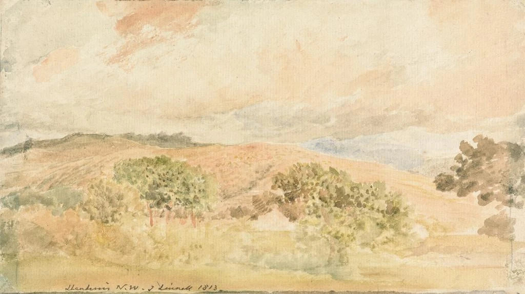 John Linnell, actief in de 19e eeuw, is een opvallende figuur binnen de Britse romantische beweging. Zijn werken, vaak geïnspireerd door de natuur, tonen een diepe gevoeligheid voor de landschappen die hij afbeeldt. Geïnspireerd door kunstenaars zoals J.M.W. Turner, heeft Linnell een unieke stijl ontwikkeld die realisme en romantiek combineert. Zijn landschappen, doordrenkt met poëzie, weerspiegelen een zoektocht naar harmonie tussen mens en natuur. De waarde van zijn werk ligt in zijn vermogen om emoties op te roepen en de kijker mee te nemen naar plaatsen vol schoonheid.