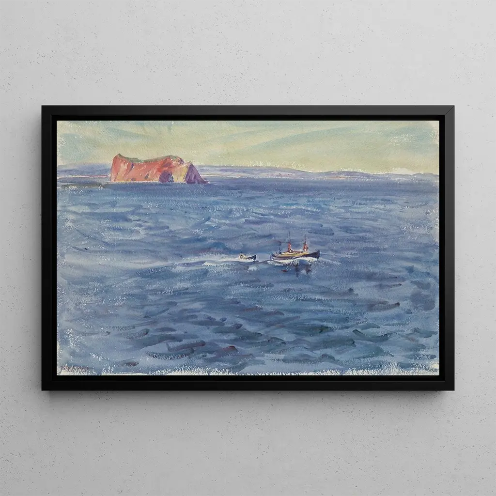 Landschapschilderij met boot en klif: een ontsnapping naar de horizon Het schilderij "Landschapschilderij met boot en klif" van Dodge MacKnight roept een serene en contemplatieve sfeer op. De nuances van blauw en groen vermengen zich harmonieus, waardoor een gevoel van diepte en oneindigheid ontstaat. Het zachte licht van de ondergaande zon verlicht de boot die rustig lijkt te varen op de golven, terwijl de majestueuze klif op de achtergrond een dramatisch element toevoegt aan de scène. MacKnight's techniek, die impressionisme en realisme combineert, laat je de zeebries en het geruis van de golven voelen, waardoor de kijker wordt meegenomen in een moment van rust en natuurlijke schoonheid. Dodge MacKnight: een meester in licht en kleur Dodge MacKnight, actief aan het einde van de 19e en het begin van de 20e eeuw, wordt erkend om zijn vermogen om licht en sfeer vast te leggen in zijn werken. Geïnspireerd door de impressionistische beweging, wist hij natuurlijke elementen in zijn composities te integreren, terwijl hij de effecten van licht op landschappen verkende. Zijn carrière, hoewel minder bekend dan die van sommige van zijn tijdgenoten, heeft een blijvende stempel gedrukt op de kunstwereld, vooral door zijn maritieme landschappen. MacKnight werd vaak geïnspireerd door de kusten van New England, waar hij een groot deel van zijn leven doorbracht, wat terug te zien is in de rust van zijn werken. Een decoratief stuk met vele voordelen De kunstdruk van "Landschapschilderij met boot en klif" is een ideaal decoratief stuk om je interieur te verfraaien, of het nu in een woonkamer, kantoor of slaapkamer is. De kwaliteit van de afdruk en de trouw aan de originele kleuren garanderen een onmiskenbare esthetische aantrekkingskracht. Dit schilderij nodigt uit tot dromen en ontsnapping, en brengt een vleugje sereniteit in je ruimte. Door voor dit doek te kiezen, kies je voor een kunstwerk dat niet alleen je decor verrijkt, maar ook de tijdloze schoonheid van de natuur oproept, waardoor elk blik een nieuwe ontdekking wordt.