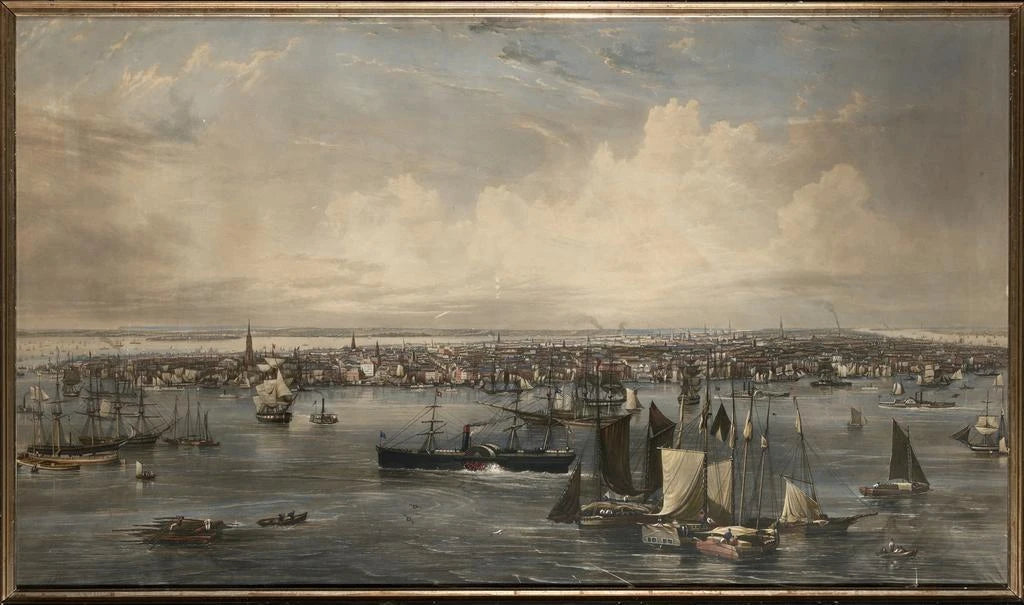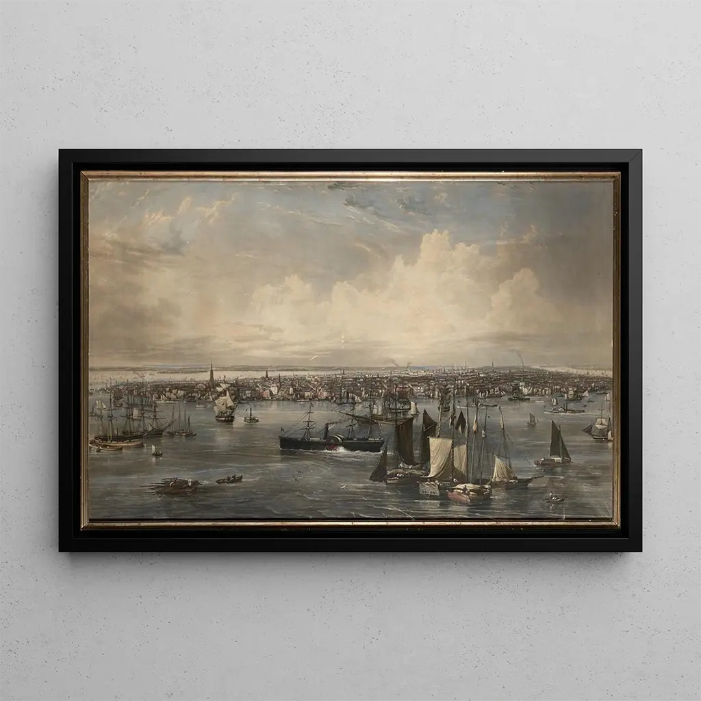 In dit iconische kunstwerk schetst John William Hill de stad New York met verbluffende precisie. Het doek, rijk aan details, onthult de levendigheid van de straten en de majestueuze architectuur van de gebouwen. De felle kleuren en de dynamische contrasten roepen de bruisende energie van de metropool op, terwijl de bewegende figuren een menselijke dimensie aan deze stedelijke scène toevoegen. De sfeer is zowel modern als nostalgisch, en vangt de essentie van een stad die voortdurend in verandering is.