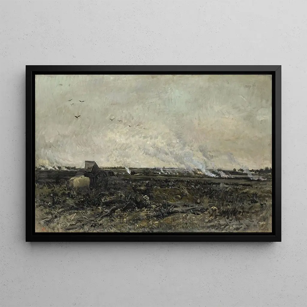 Octobre : een ode aan de natuur in volle verandering De kunstdruk Octobre van Charles François Daubigny roept de vergankelijke schoonheid van de herfst op. Dit doek, rijk aan nuances van geel, oranje en rood, vangt het gouden licht van een oktobermiddag. De penseelstreken, zowel delicaat als krachtig, brengen een landschap tot leven waarin de natuur zich voorbereidt op de winter. De bomen, majestueus en levendig, staan trots, terwijl de hemel, getint in blauw en wolken, een poëtische dimensie aan het geheel toevoegt. De sfeer die uit dit werk straalt, nodigt uit tot contemplatie en reflectie over de cyclus van de seizoenen. Charles François Daubigny : een meester van het impressionistische landschap Charles François Daubigny, een iconische figuur van de impressionistische beweging, wist de essentie van de natuur vast te leggen in zijn werken. Geboren in 1817, werd hij beïnvloed door de grote meesters van zijn tijd, zoals Corot en Rousseau. Zijn carrière beslaat de tweede helft van de 19e eeuw, een periode waarin de kunst zich bevrijdt van academische conventies. Daubigny wordt erkend om zijn vermogen om licht en sfeer te weergeven, waardoor gewone scènes poëtische momenten worden. Zijn werk heeft de weg geëffend voor vele kunstenaars en maakt hem tot een pijler in de geschiedenis van het landschapskunst. Een decoratief stuk met vele voordelen De kunstdruk van de kunstdruk Octobre is een ideale keuze om je interieur te verfraaien, of het nu in een woonkamer, kantoor of slaapkamer is. Het warme palet en de verfijnde details brengen een gevoel van rust en natuur in je decoratie. De kwaliteit van de afdruk garandeert een opmerkelijke trouw aan het originele werk, waardoor je dagelijks van zijn schoonheid kunt genieten. Door deze doek in je ruimte te integreren, creëer je een uitnodigende en inspirerende sfeer, terwijl je het talent van Charles François Daubigny en de verwondering van de natuur viert.