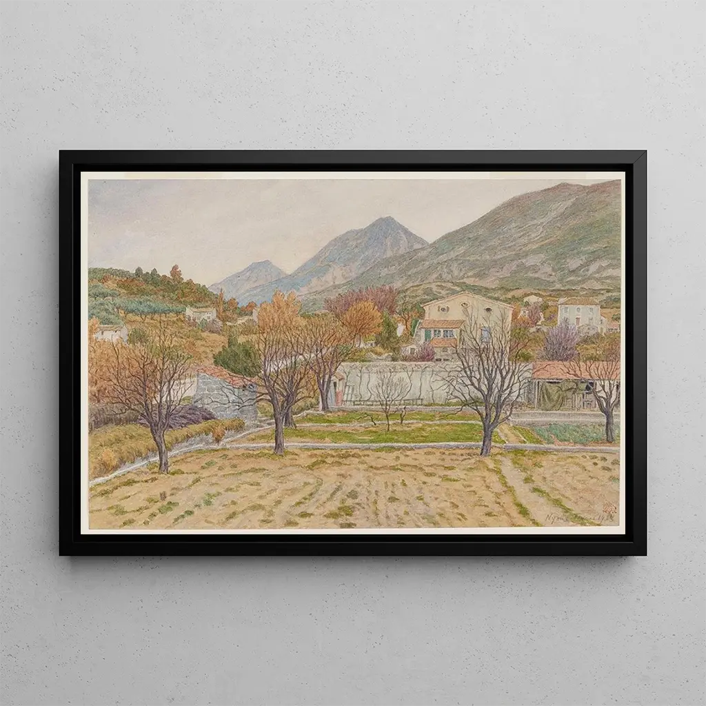 Environs de Nyons : een ode aan licht en kleur. Henri Rivière brengt ons naar de "Environs de Nyons", waar het zonlicht de Provençaalse landschappen streelt. Dit kunstwerk onderscheidt zich door zijn levendige tinten en dynamische compositie, die de essentie van de natuur vastleggen. Rivière, met zijn aquarellentechniek, creëert lichte en luchtige sferen, waarin elke penseelstreek lijkt te dansen op het doek. De golvende heuvels en lavendelvelden roepen een gevoel van vrede en ontsnapping op, waardoor deze kunstdruk een ware uitnodiging is tot het bewonderen van de wonderen van de Provence. Henri Rivière : een meester van het impressionistische landschap. Franse kunstenaar actief aan het einde van de 19e eeuw, Henri Rivière wordt erkend voor zijn vernieuwende benadering van het landschap. Geïnspireerd door de impressionisten, wist hij de licht en kleuren van de natuur met een unieke gevoeligheid vast te leggen. Rivière was ook een pionier in het gebruik van lithografie, waardoor hij zijn werken aan een breder publiek kon verspreiden. Zijn landschappen, vaak geïnspireerd door de regio Provence, getuigen van een diepe verbondenheid met de natuur en een zoektocht naar schoonheid, waardoor hij een essentiële figuur is in de Franse kunst van zijn tijd. Een decoratief kunstwerk met vele voordelen. De kunstdruk van "Environs de Nyons" is een perfecte keuze voor wie een vleugje kleur en licht in hun interieur wil brengen. Of het nu in een woonkamer, kantoor of slaapkamer is, dit doek roept de zachtheid van het leven in Provence op. De afdrukkwaliteit garandeert een opmerkelijke fideliteit aan de details en nuances van het originele kunstwerk, terwijl het een onmiskenbare esthetische aantrekkingskracht biedt. Door deze kunstdruk in uw inrichting te integreren, verrijkt u uw leefruimte met een kunstwerk dat de rust en schoonheid van de natuur uitstraalt.