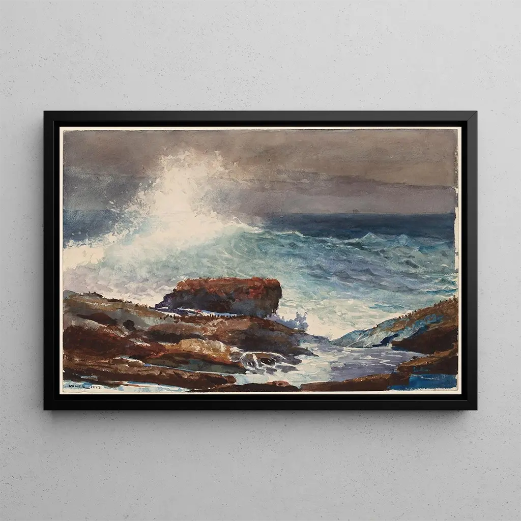 Marée Montante à Scarboro, Maine : een omhelzing tussen zee en hemel In "Marée Montante à Scarboro, Maine" vangt Winslow Homer de essentie van de natuur in beweging. Dit doek, met een voelbare emotionele intensiteit, beeldt een woeste zee af waar de golven krachtig tegen de rotsen beuken. De levendige kleuren, variërend van diepe blauwen tot heldere groenen, creëren een sfeer die zowel dramatisch als rustgevend is. De aquareltechniek, beheerst door Homer, maakt het mogelijk om de vloeiendheid van het water en de helderheid van de lucht weer te geven, en nodigt uit tot contemplatie van de natuurlijke krachten. Het werk roept een intieme verbinding op tussen mens en omgeving, een thema dat de kunstenaar na aan het hart ligt. Winslow Homer: een pionier van de Amerikaanse kunst Winslow Homer, geboren in 1836, wordt vaak beschouwd als een van de grootste Amerikaanse schilders van de 19e eeuw. Geïnspireerd door de realistische beweging en het Amerikaanse landschap, wist hij de ruwe schoonheid van de natuur en het dagelijks leven van mensen vast te leggen. Zijn carrière begon als illustrator, maar hij evolueerde snel naar schilderen, waarbij hij maritieme thema's en scènes uit het plattelandsleven verkende. "Marée Montante à Scarboro, Maine" past in een periode waarin de Amerikaanse kunst zich probeerde te definiëren, ver weg van Europese invloeden. Het werk getuigt van zijn inzet voor een authentieke weergave van de natuur en het leven, en versterkt zo zijn artistieke nalatenschap. Een decoratieve aankoop met vele voordelen De kunstdruk van "Marée Montante à Scarboro, Maine" is een ideale keuze om je interieur te verfraaien, of het nu in een woonkamer, kantoor of slaapkamer is. De afdrukkwaliteit garandeert een verbluffende trouw aan de kleuren en details van het originele werk, waardoor je de kracht van de zee volledig kunt ervaren. Dit schilderij brengt een gevoel van rust en dynamiek, en is tegelijkertijd een boeiend gespreksonderwerp. Met zijn onmiskenbare esthetische aantrekkingskracht past deze doek harmonieus in diverse decoratiestijlen, en vormt het een waardevolle aanvulling op je kunstcollectie.