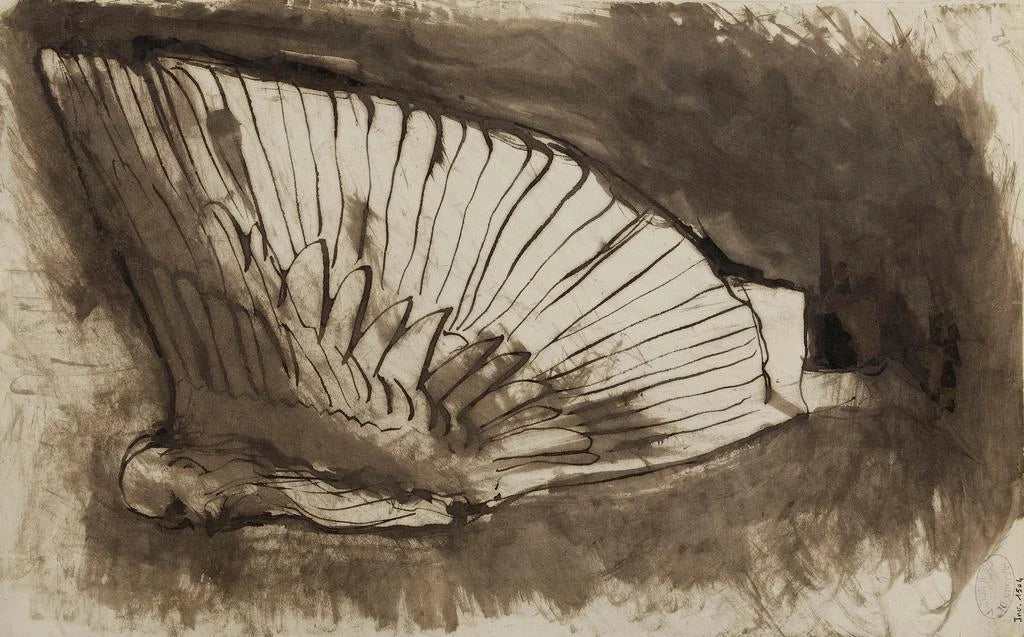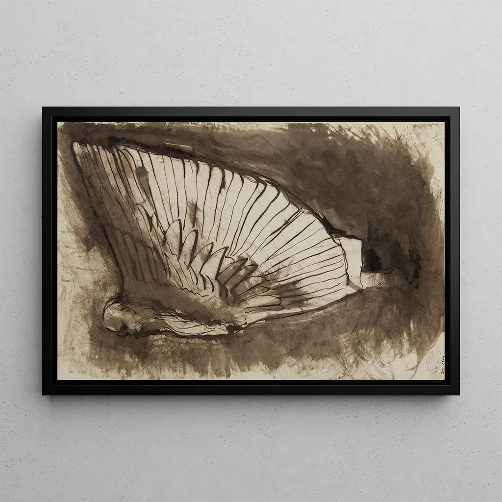 In deze kunstdruk van Oudeman de vogelhabijt dompelt Victor Hugo ons onder in een scène vol poëzie en melancholie. Het schilderij, rijk aan donkere kleuren en grijstinten, toont een oude man gekleed in een jas die de veren van een vogel oproept, symboliserend zowel vrijheid als kwetsbaarheid. Hugo's techniek, die aquarel en inkt combineert, creëert een etherische, bijna dromerige sfeer, waarin de blik van de oude man lijkt te vragen naar de wereld om hem heen. Dit werk, zowel eenvoudig als diepzinnig, nodigt uit tot reflectie over de tijd en eenzaamheid.