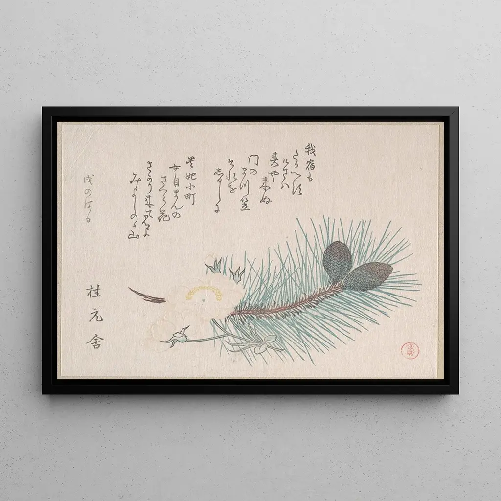 Pins en kersenbloesem: een delicate harmonie van de natuur De kunstdruk "Pins en fleurs de cerisier" van Kubo Shunman roept een lentevolle sereniteit op, waarin de vergankelijke schoonheid van de kersenbloesem samengaat met de kracht van de dennenbomen. De pastelkleuren, zacht en rustgevend, vormen een harmonieuze combinatie die een sfeer van rust creëert. De techniek van de ukiyo-e houtdruk, typerend voor de ukiyo-e, toont een minutieuze aandacht voor details, van de delicate bloemblaadjes tot de getextureerde schors van de bomen. Dit werk nodigt uit tot meditatieve contemplatie, waarbij elke blik een nieuwe nuance van schoonheid onthult en de essentie van de Japanse natuur vastlegt. Kubo Shunman: een meester van de Japanse ukiyo-e Kubo Shunman, actief tijdens de Edo-periode, wordt erkend om zijn uitzonderlijk talent in de Japanse ukiyo-e. Geïnspireerd door de artistieke tradities van zijn tijd, wist hij natuurlijke elementen in zijn werken te integreren, terwijl hij de schoonheid van vrouwen en landschappen verkende. Zijn stijl onderscheidt zich door verfijning en elegantie die de Japanse kunst hebben beïnvloed. Als kunstenaar van de ukiyo-e-school heeft hij bijgedragen aan de populariteit van deze kunstvorm en een blijvende erfenis achtergelaten die hedendaagse kunstenaars blijft inspireren. Zijn werken, zoals "Pins en bloemen van kersenbloesem", getuigen van zijn vaardigheid om vluchtige momenten van schoonheid vast te leggen. Een decoratief stuk met vele voordelen De kunstdruk "Pins en bloemen van kersenbloesem" is een ideaal decoratief stuk om een vleugje elegantie aan uw interieur toe te voegen. Of het nu in een woonkamer, kantoor of slaapkamer is, dit doek zal uw leefruimte verrijken met zijn tijdloze schoonheid. De afdrukkwaliteit garandeert een opmerkelijke fideliteit aan de details van het originele werk, terwijl het een onmiskenbare esthetische aantrekkingskracht biedt. Door te kiezen voor deze kunstdruk, kiest u voor een werk dat niet alleen uw decor verfraait, maar ook een diepe verbinding met de Japanse cultuur en haar artistieke tradities oproept.