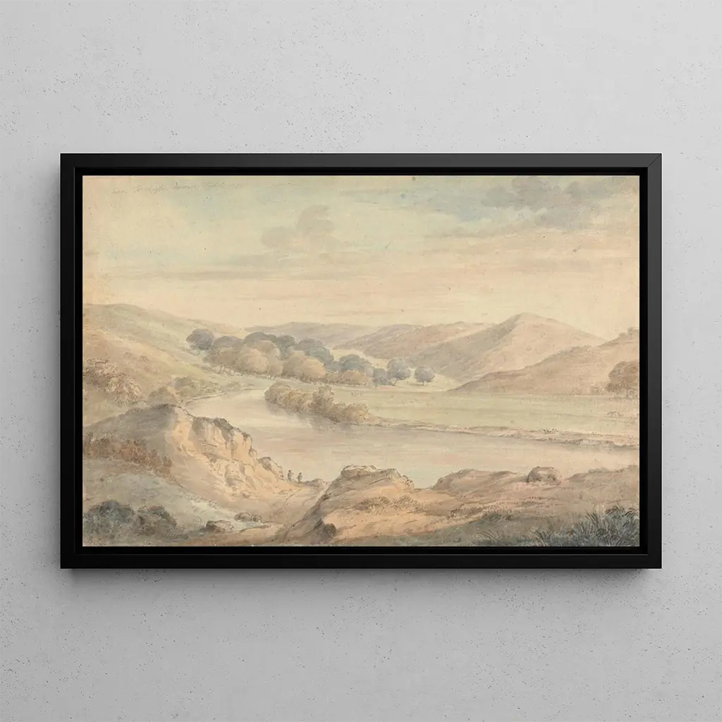 Près de Torrington, Devonshire : een landelijke scène doordrenkt met sereniteit In deze kunstdruk van Près de Torrington, Devonshire, brengt Kapitein Francis Grose ons naar het hart van een rustgevend Engels landschap. De zachte tinten groen en blauw mengen harmonieus, waardoor een sfeer van rust ontstaat. De olieverftechniek stelt je in staat om de delicate nuances van het licht vast te leggen, dat weerkaatst op het water en de bladeren verlicht. De compositie, met zijn vloeiende lijnen en organische vormen, nodigt uit tot contemplatie en roept een rustige wandeling door het Engelse platteland op. Kapitein Francis Grose: een getuige van het Engeland van de achttiende eeuw Kapitein Francis Grose, actief in de achttiende eeuw, staat bekend om zijn werken die de schoonheid van Britse landschappen vieren. Geïnspireerd door de romantische beweging, wist hij de essentie van de natuur met een bijzondere gevoeligheid vast te leggen. Zijn reizen door Engeland stelden hem in staat om landelijke scènes te observeren en te weergeven, vaak doordrenkt met nostalgie naar een geïdealiseerd verleden. Grose heeft ook bijgedragen aan de documentatie van de tradities en landschappen van zijn tijd, waardoor hij een essentiële kunstenaar is om de evolutie van landschapskunst in Groot-Brittannië te begrijpen. Een decoratief kunstwerk met vele voordelen Deze kunstdruk van het schilderij Près de Torrington, Devonshire is een ideale keuze om je interieur te verfraaien, of het nu in een woonkamer, kantoor of slaapkamer is. De kwaliteit van de afdruk en de trouw aan het originele werk garanderen een onmiskenbare esthetische aantrekkingskracht. Door deze doek in je decoratie te integreren, breng je een vleugje sereniteit en elegantie in je ruimte. De rustgevende nuances van dit landschap nodigen uit tot ontspanning, terwijl ze een artistieke dimensie toevoegen aan je dagelijkse omgeving.