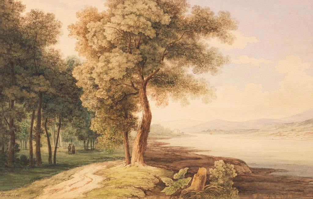 Ferdinand Kobell, Duitse schilder uit de achttiende eeuw, staat bekend om zijn evocatieve landschappen die de essentie van de natuur vastleggen. Geïnspireerd door de romantische beweging, wist hij elementen van het dagelijks leven in zijn kunstwerken te integreren, wat de harmonie tussen mens en omgeving weerspiegelt. Zijn landschappen, vaak geïnspireerd door reizen door Duitsland en daarbuiten, getuigen van zijn liefde voor de natuur en zijn wens om deze authentiek weer te geven. "Rinemiddellandschap" past binnen deze traditie, en viert de schoonheid van rivieren en valleien, terwijl het belang van de natuur in de Europese cultuur benadrukt.
