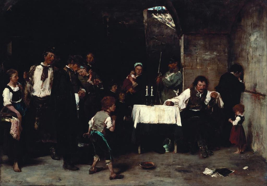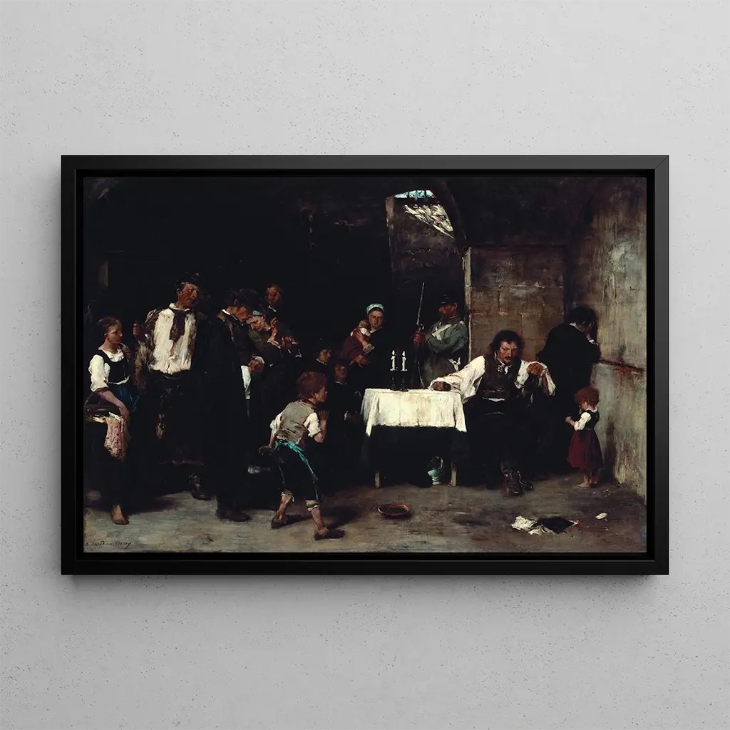 Mihály Munkácsy, Hongaarse schilder uit de 19e eeuw, staat bekend om zijn vermogen om momenten van grote emotionele intensiteit vast te leggen. Geïnspireerd door het realisme en het romantisme, wist hij een onberispelijke techniek te combineren met psychologische diepgang. Zijn werken, vaak gekenmerkt door sociale en historische thema's, weerspiegelen een tijd waarin kunst een middel werd om menselijke strijd uit te drukken. Munkácsy heeft een blijvende erfenis achtergelaten, onder andere door iconische schilderijen die blijven ontroeren en inspireren. "Cellule condamnée I" past in deze lijn en getuigt van zijn inzet voor authentieke weergave van menselijke emoties.