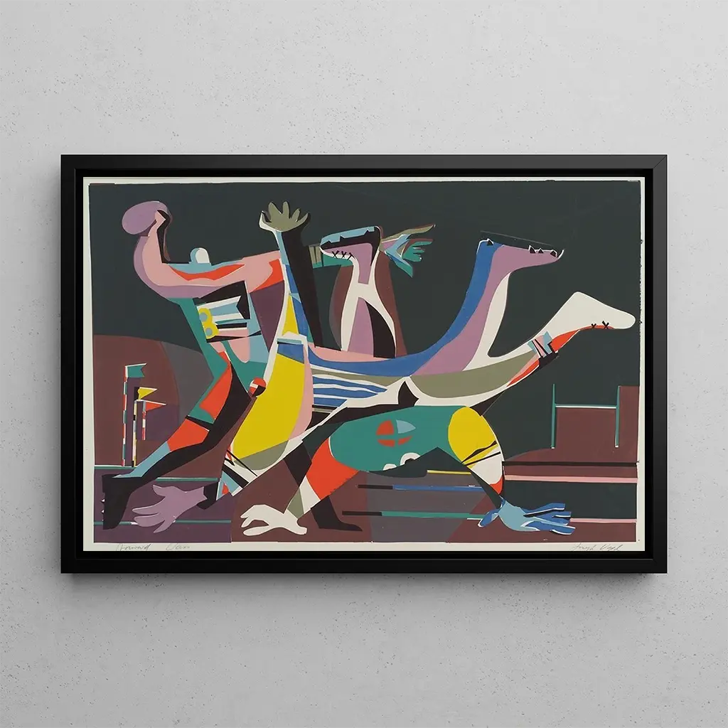 In dit levendige kunstwerk vangt Joseph Vogel de essentie van beweging door middel van dynamische vormen en heldere kleuren. Het doek, rijk aan nuances, roept een gevoel van vloeiendheid en energie op, alsof de personages onder onze ogen tot leven komen. Het spel van licht en schaduw voegt een boeiende diepte toe, en nodigt de kijker uit om onder te dompelen in deze betoverende wereld. Elke penseelstreek lijkt een verhaal te vertellen, een uitnodiging om de impuls van het leven te voelen die zich voor ons ontvouwt.