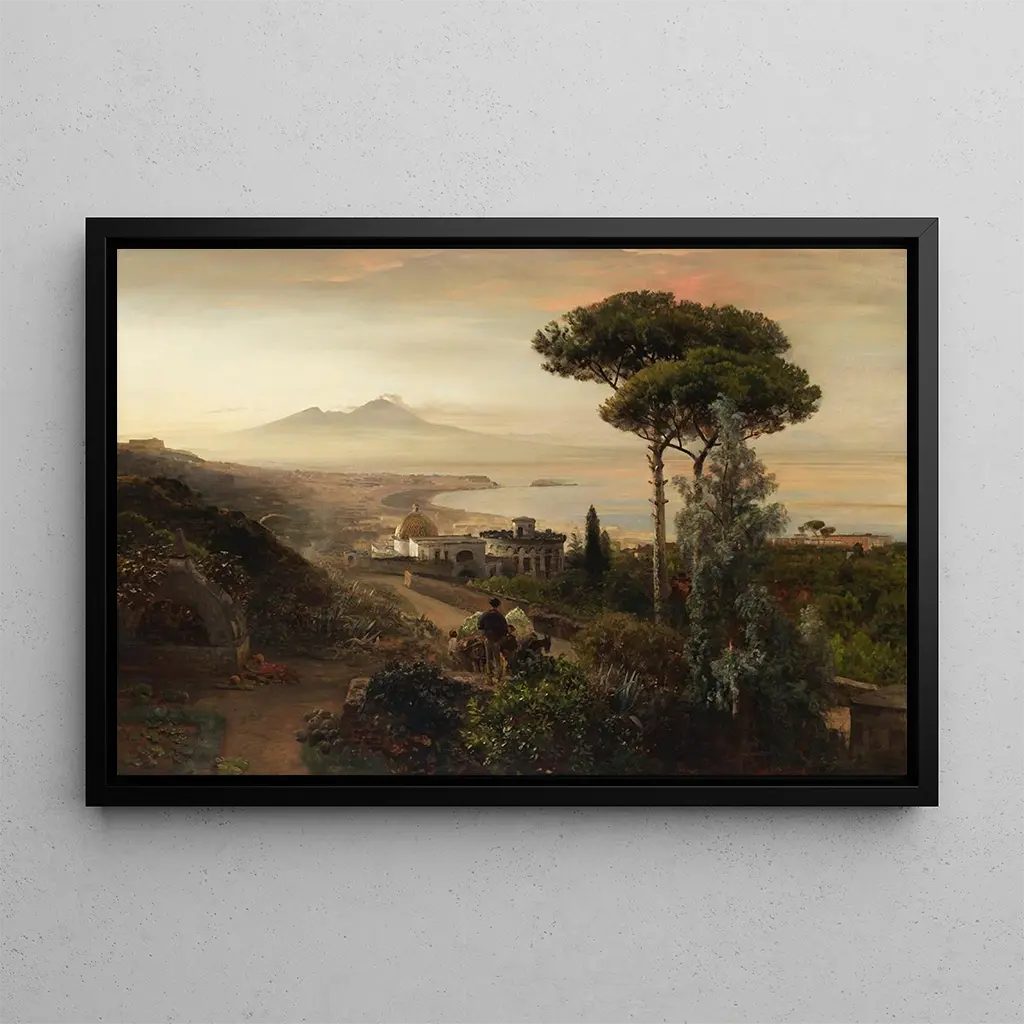 De kunstdruk van het uitzicht op de Vesuvius biedt een boeiend inzicht in een majestueus landschap, waar de kracht van de natuur samenkomt met de rust van de omliggende wateren. De levendige tinten blauw en groen, gecombineerd met gouden lichtaccenten, creëren een serene en rustgevende sfeer. De kunstenaar heeft de pracht van de vulkaan weten vast te leggen, terwijl hij elementen van het dagelijks leven heeft geïntegreerd, zoals boten op zee, die een menselijke dimensie aan dit schilderij toevoegen. Dit kunstwerk nodigt uit tot contemplatie en ontsnapping, en brengt de kijker naar betoverende kusten.