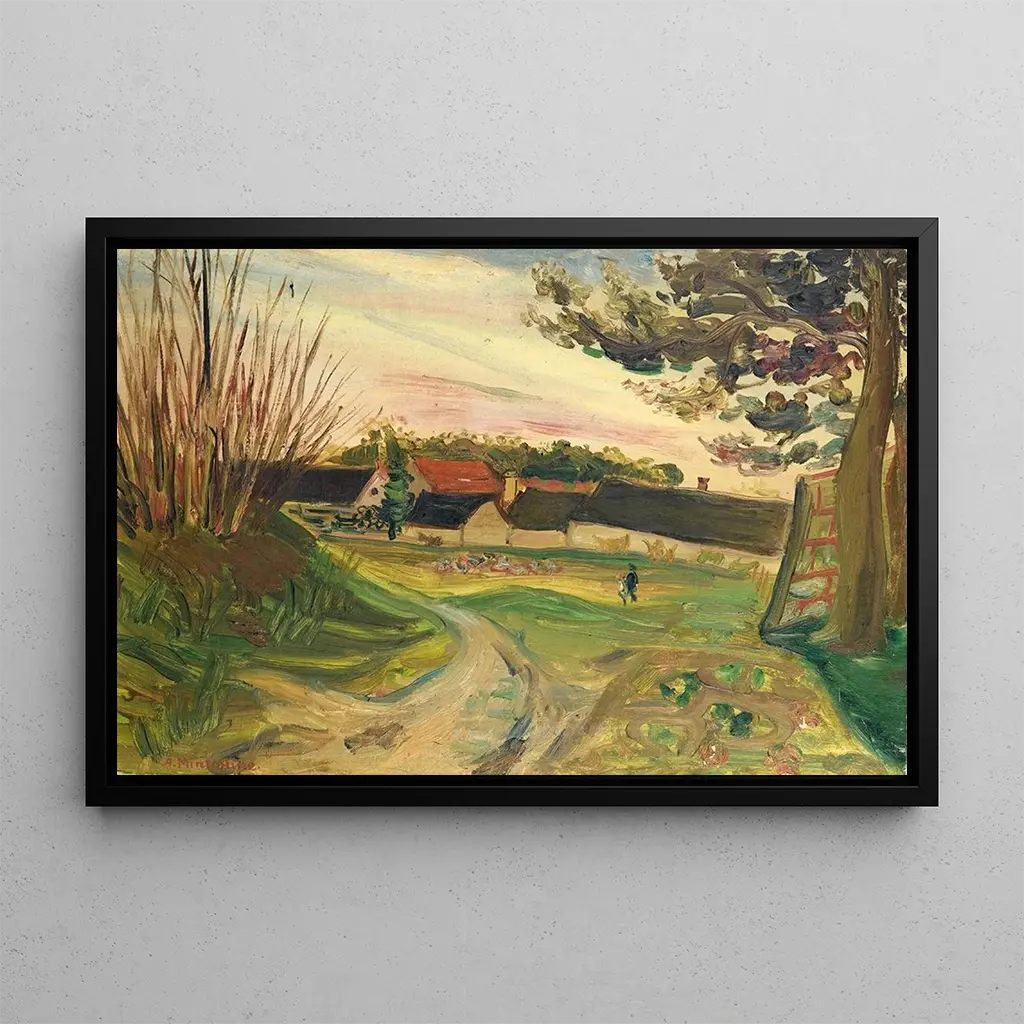 De kunstdruk van het schilderij Promeneurs devant une ferme van Abraham Mintchine roept een rustige en nostalgische sfeer op. In dit werk beeldt Mintchine een landelijk tafereel af waarin personages rustig wandelen voor een boerderij, omringd door weelderige natuur. De zachte kleuren en delicate nuances creëren een visuele harmonie die uitnodigt tot contemplatie. De minutieuze details van de bomen en de structuur van de boerderij getuigen van het talent van de kunstenaar om de schoonheid van landelijke landschappen vast te leggen. Dit doek roept een terugkeer op naar eenvoud en rust, ver weg van de drukte van het stadsleven.
