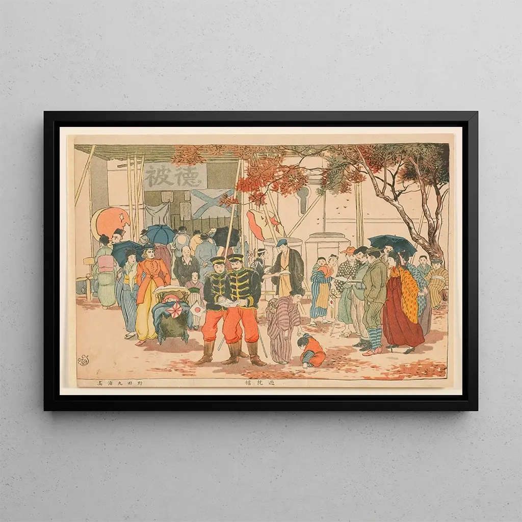Yshkan : een dans van kleuren en vormen De kunstdruk Yshkan van Noda Kyōhō roept een delicate harmonie op tussen traditie en moderniteit. De heldere kleuren en de vloeiende vormen vermengen zich om een bijna dromerige sfeer te creëren. De techniek van de kunstenaar, die gebruikmaakt van precieze penseelstreken en subtiele gradaties, brengt deze compositie tot leven. Elk element lijkt te vibreren, en nodigt de kijker uit om onder te dompelen in een wereld waar natuur en kunst samenkomen. Deze kunstdruk van Yshkan is een ware ode aan schoonheid, een schilderij dat de essentie van sereniteit vastlegt. Noda Kyōhō : een meester van de Japanse houtsnede Noda Kyōhō is een Japanse kunstenaar wiens werk binnen de traditie van ukiyo-e houtsneden valt, maar met een eigentijdse toets. Geboren in de 20e eeuw, wist hij zich te laten inspireren door de meesters van het verleden, terwijl hij moderne elementen in zijn creaties verwerkte. Zijn unieke stijl, die oude technieken combineert met een hedendaagse visie, heeft hem een naam bezorgd op het internationale kunsttoneel. De kunstdruk Yshkan getuigt van zijn vaardigheid om vergankelijke momenten vast te leggen, terwijl hij eer betoont aan de rijkdom van de Japanse cultuur. Een decoratief stuk met vele voordelen De kunstdruk Yshkan is een ideale keuze om je interieur te verfraaien, of het nu in een woonkamer, kantoor of slaapkamer is. Zijn levendige kleurenpalet en boeiend ontwerp voegen een vleugje elegantie en sereniteit toe aan elke ruimte. Gemaakt van hoogwaardige materialen, garandeert deze doek een opmerkelijke trouw aan het originele werk, terwijl hij voor iedereen toegankelijk blijft. Door te kiezen voor dit schilderij, kies je voor een decoratie die zowel esthetisch als betekenisvol is, en die je gasten zal bekoren en je omgeving zal verrijken.