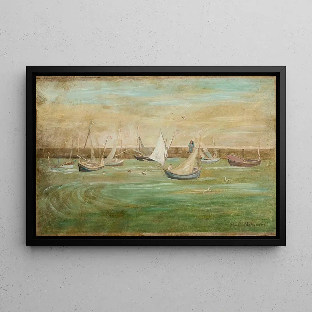 Zeilboten: een dans op de golven. In dit werk van Tadeusz Makowski komen de zeilboten tot leven, glijdend met gratie over het rustige water. De levendige kleuren en de gestileerde vormen roepen een vrolijke en dynamische sfeer op, waarin de beweging van de zeilen bijna voelbaar lijkt. Makowski, met zijn unieke aanpak, slaagt erin de essentie van navigatie vast te leggen, waarbij abstractie en realiteit worden gecombineerd. Elk element van de compositie, van de zeilen tot de reflecties op het water, is zorgvuldig georkestreerd om een visueel harmonisch geheel te creëren dat de kijker meeneemt in een betoverende maritieme wereld. Tadeusz Makowski: een pionier van het Poolse modernisme. Poolse kunstenaar actief in het begin van de 20e eeuw, Tadeusz Makowski wordt erkend om zijn innovatieve stijl die cubistische en expressionistische invloeden combineert. Zijn carrière, gekenmerkt door reizen naar Frankrijk, stelt hem in staat om zich te verdiepen in de Europese kunststromingen, terwijl hij stevig geworteld blijft in zijn oorspronkelijke cultuur. Makowski wist zich te onderscheiden door zijn vermogen om traditionele thema’s, zoals navigatie, te herinterpreteren door een moderne lens. Zijn werk, hoewel minder bekend dan dat van sommige van zijn tijdgenoten, speelt een cruciale rol in de evolutie van de Poolse kunst. Een decoratief stuk met vele voordelen. De kunstdruk van dit doek van Tadeusz Makowski is een waardevolle aanvulling op elke kunstcollectie, die een vleugje frisheid en dynamiek toevoegt aan uw interieurdecoratie. Of het nu in een woonkamer, kantoor of slaapkamer is, dit schilderij trekt de aandacht en wekt bewondering. De kwaliteit van de afdruk garandeert een uitzonderlijke trouw aan de levendige kleuren en de verfijnde details van het originele werk. Door te kiezen voor deze kunstdruk geeft u uw ruimte een unieke maritieme sfeer, terwijl u het artistieke erfgoed van een meester van het modernisme viert.