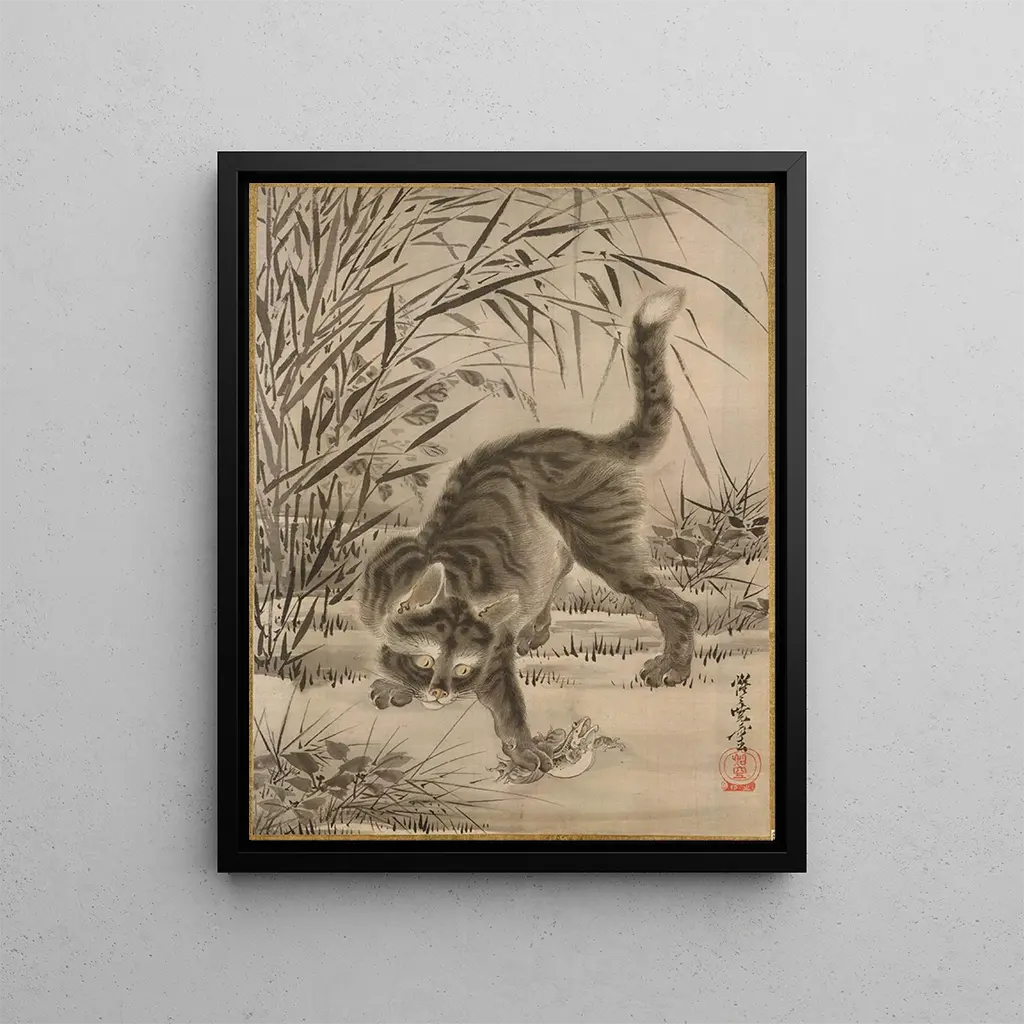Chat die een kikker vangt - Kawanabe Kyōsai