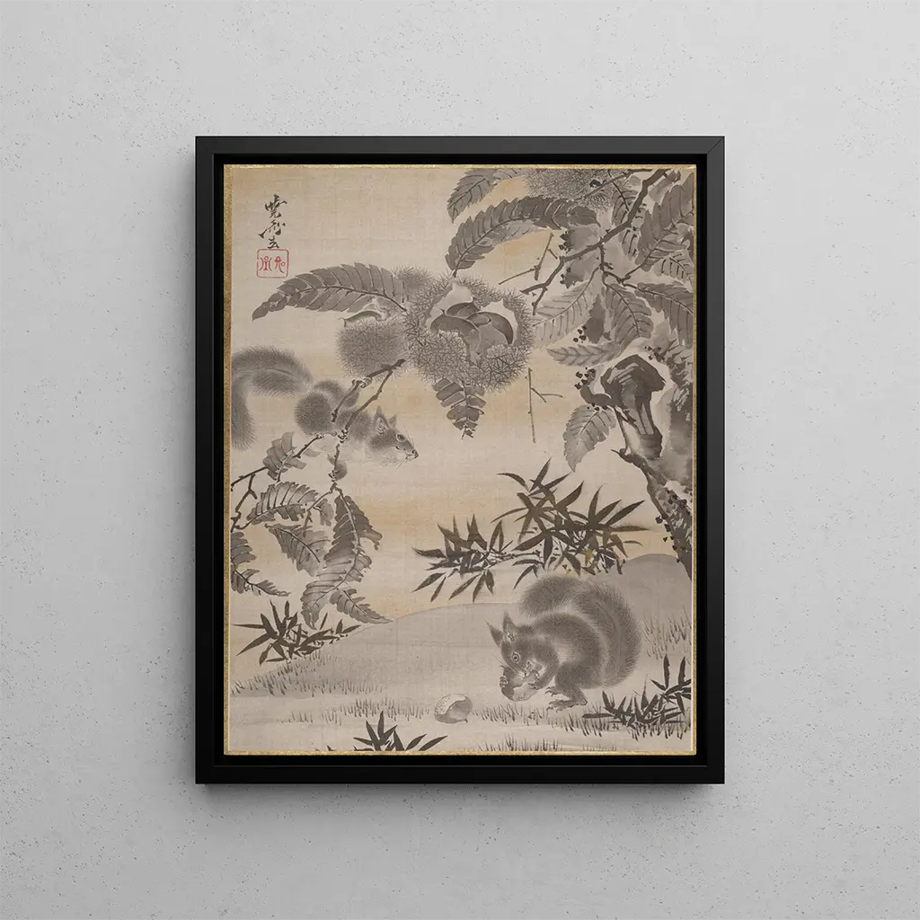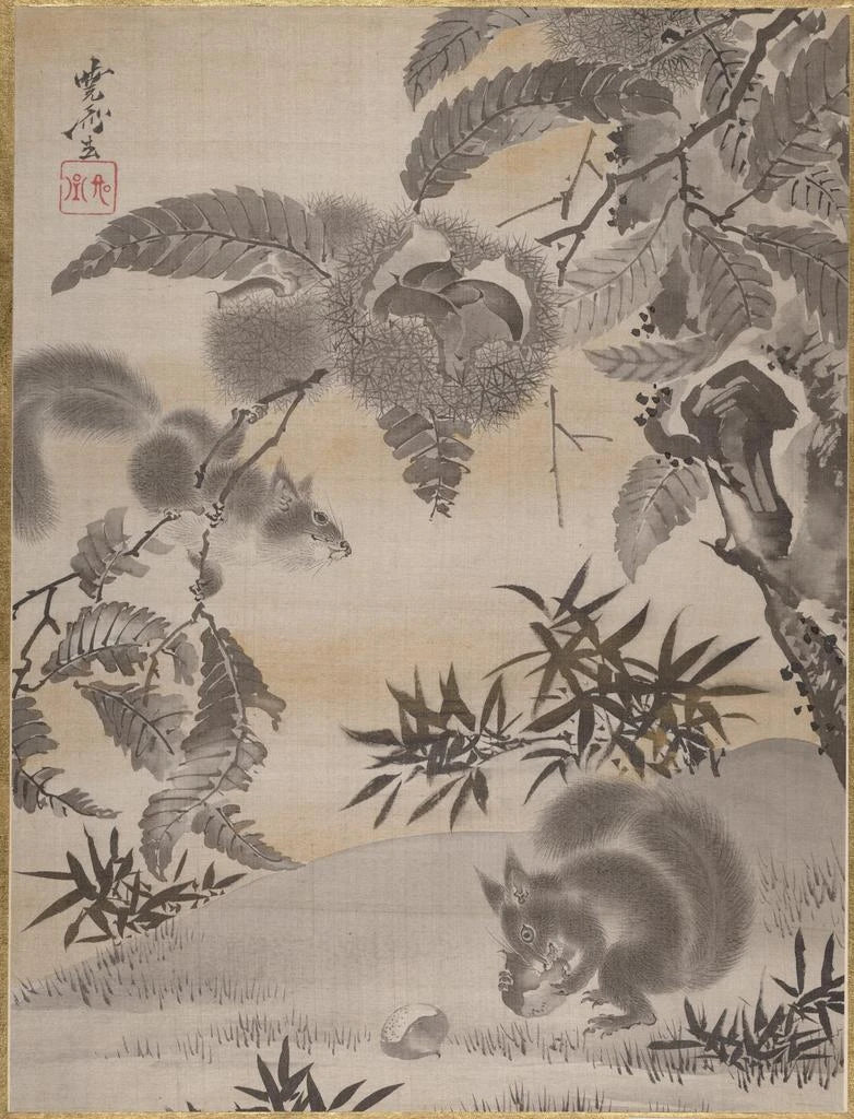 Eekhoorns die kastanjes verzamelen - Kawanabe Kyōsai