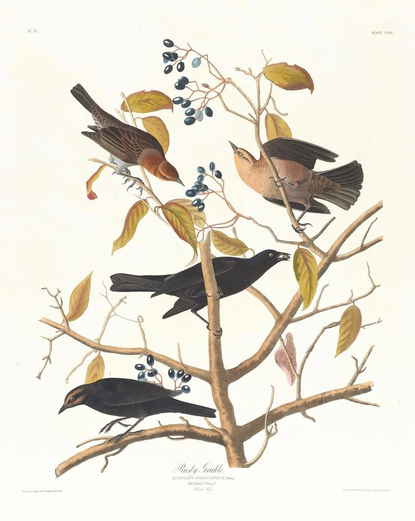 Roestige kraai - John James Audubon Source: Grakle rouillé - John James Audubon