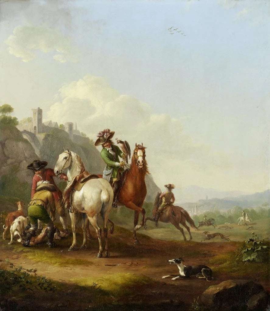 Jachthondenjacht met de valkenier - Johann Georg Pforr