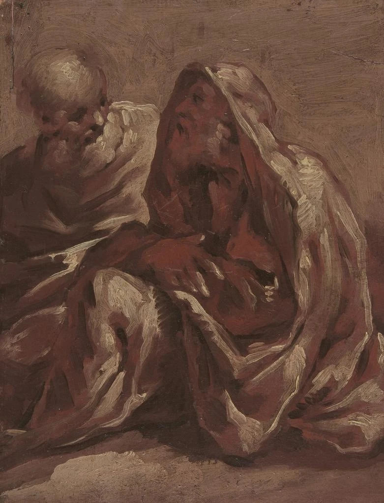 Twee mannelijke, baardige figuren zittend - Sigismondo Caula